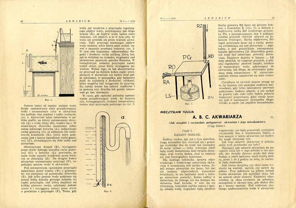 Uwagi: Fachowy miesięcznik akwarystyczny (hobbystyczny) wydawany w Warszawie w latach 1938-1939 pod redakcją Mieczysława Tulei przez Warszawskie Towarzystwo Miłośników Akwariów: R. 1 nr 1 (Lipiec 1938) - T. 1 nr 8/9 (1939). W tym numerze nie było spisu treści numeru
