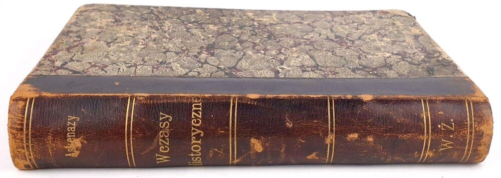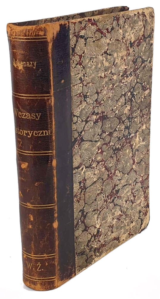 TWARDA OPRAWA PÓŁSKOREK Z EPOKI, ZŁOCONA TYTULATURA NA GRZBIECIE. KARTON MARMORYZOWANY