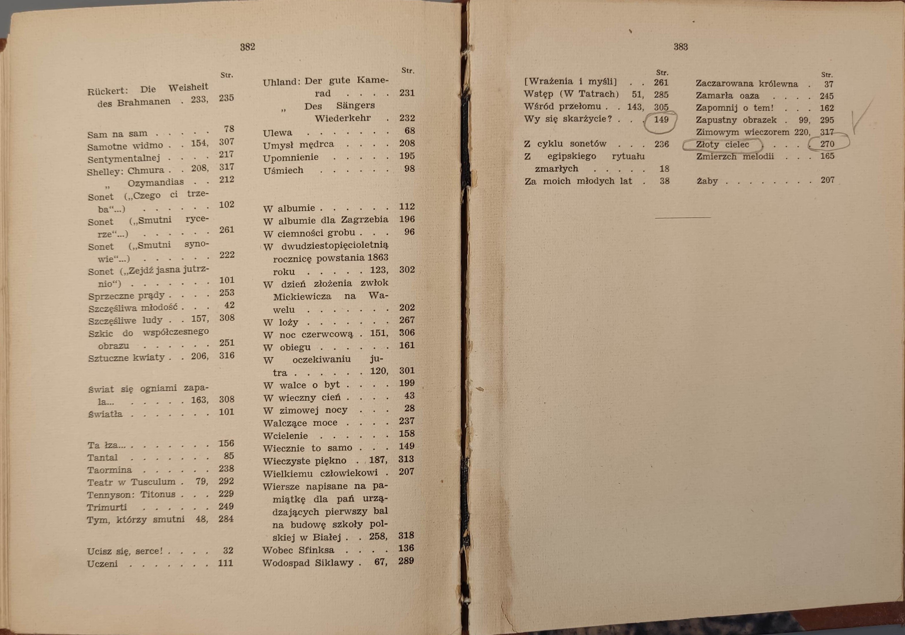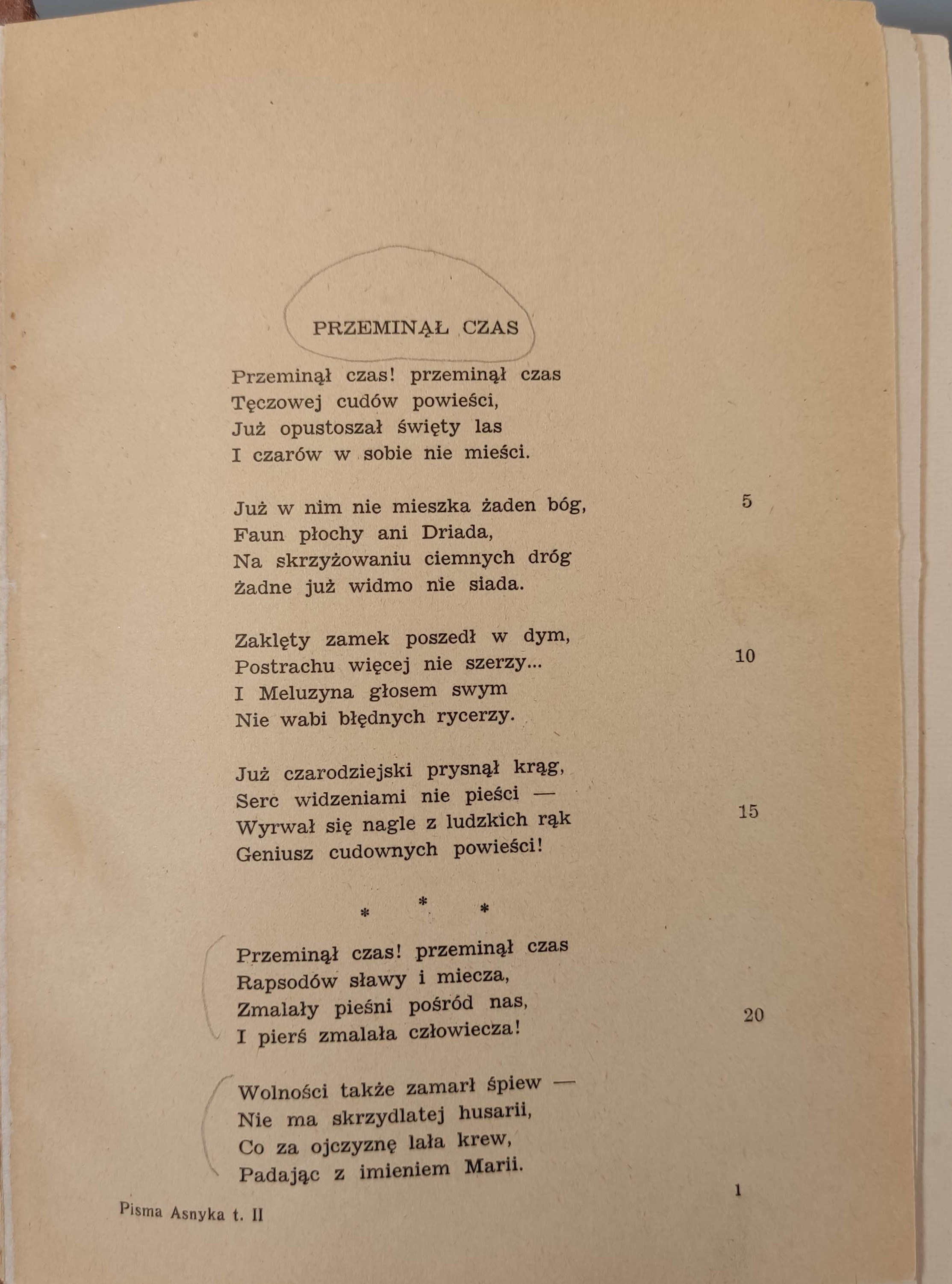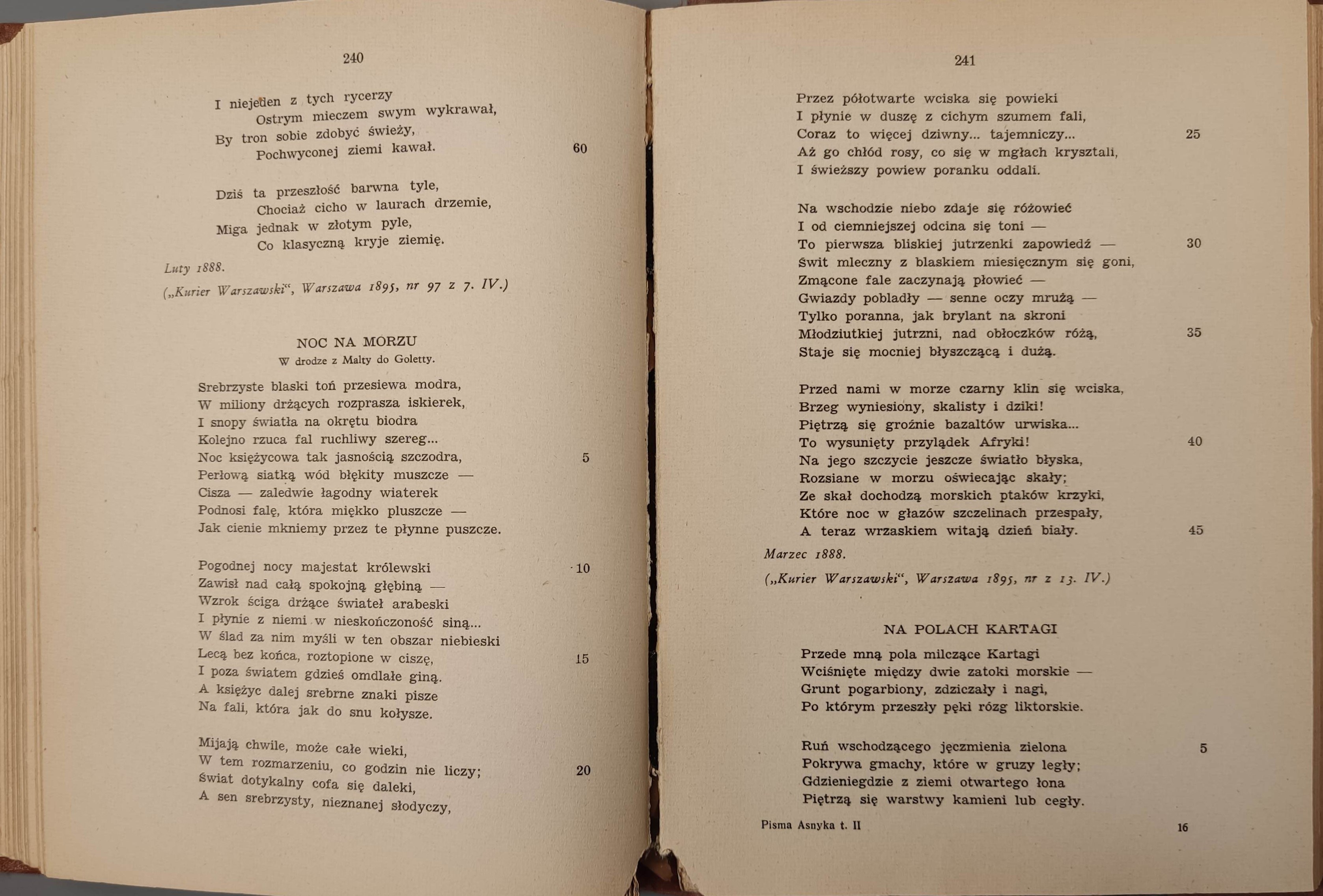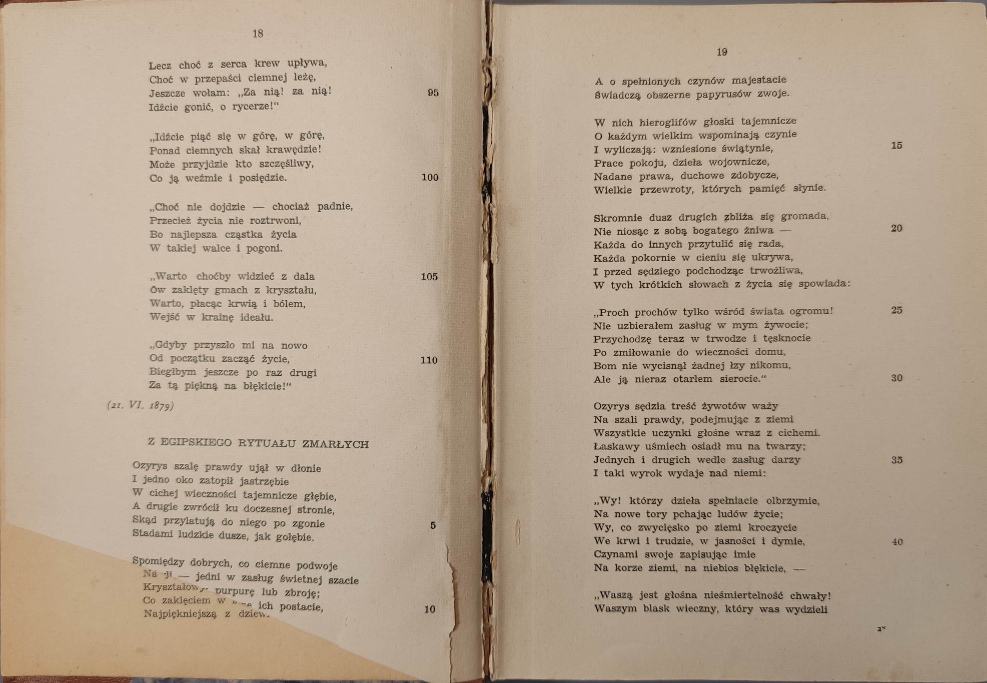 ILUSTRACJE. Wydanie jubileuszowe w setną rocznicę urodzin poety, staraniem ,,Komitetu uczczenia Adama Asnyka'' w Warszawie. Sp.Akc.Nasza Księgarnia, Zw.Naucz. Pol., Warszawa 1939.Oprawa półpł.(otarcia); ubytek dolnego rogu z tekstem na str.17/18; miejscami podkreślenia ołówkiem w tekście; przybrudzenia.