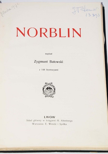 BATOWSKI ZYGMUNT - NORBLIN. Z 148 ilustracyami. SKŁAD GŁÓWNY W KSIĘGARNI H. ALTENBERGA, LWÓW [1911r.], str. [4], 219, [1], liczne ilustr. w tekście oraz na osobn. tabl.; 25cm. Monografia poświęcona Janowi Piotrowi Norblinowi (1745-1830), francuskiemu malarzowi, grafikowi i rysownikowi działającemu w Polsce.