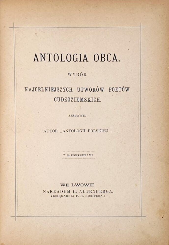 Lwów: Nakład em H. Altenberga (Księgarnia F.H.Richtera), br. ; str. XIV, 370, ozdobne winiety, format 14,5 x 20,5 cm