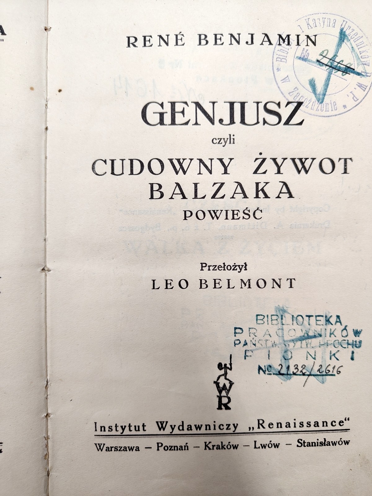 Benjamin Rene - Genjusz czyli cudowny żywot Balzaka, Warszawa 1929