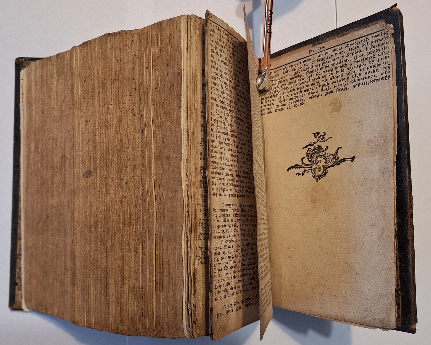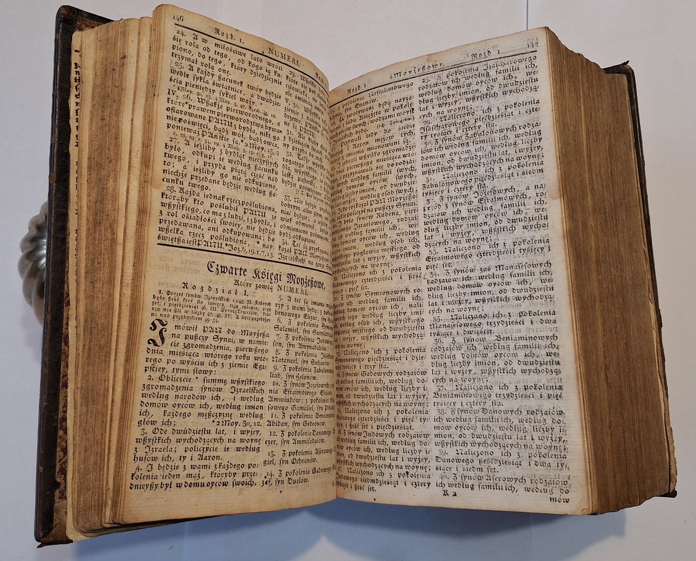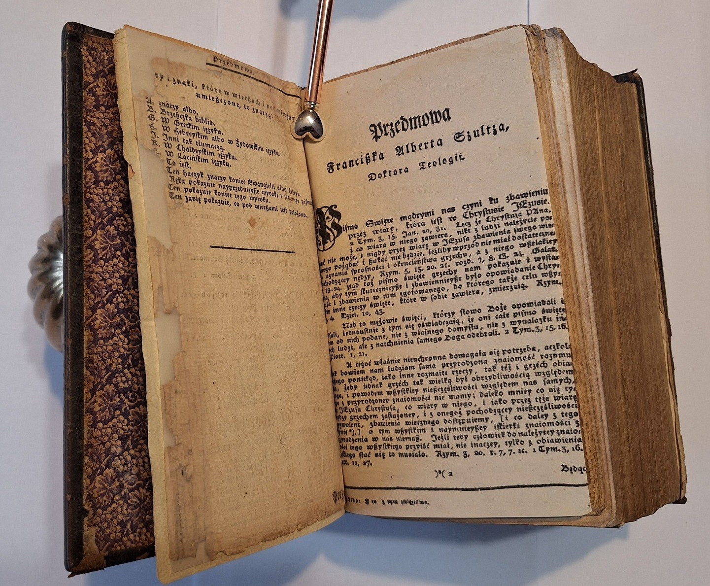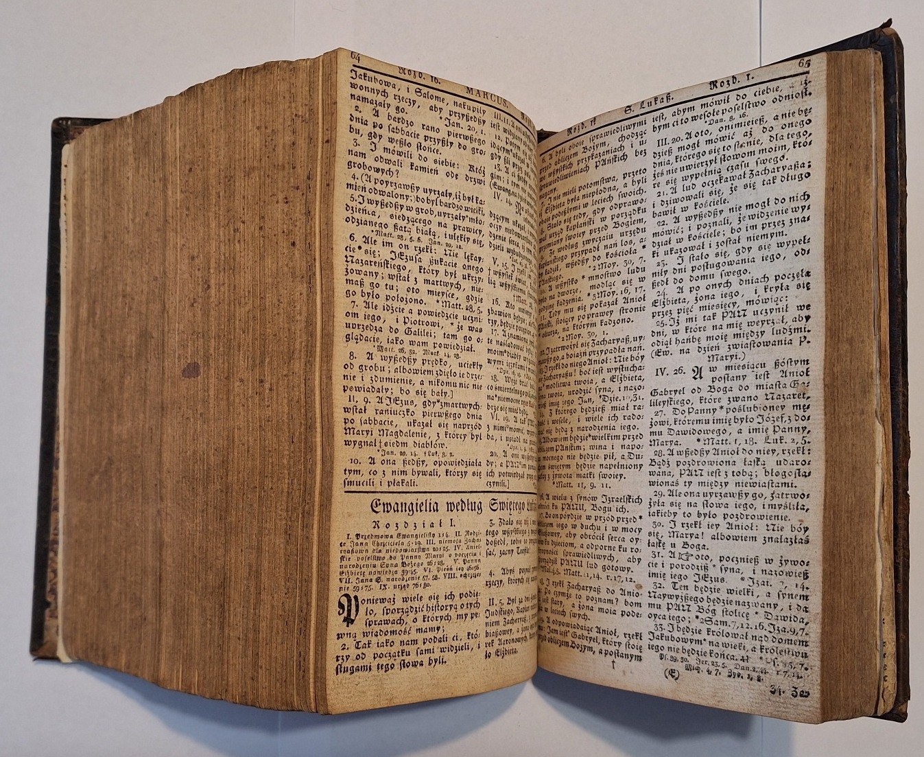 Biblia Gdańska, Biblia to iest Wszystko Pismo Swięte Starego i Nowego Przymierza według Edycyi Biblii Gdańskiey w Roku 1632 wydaney, Berlin w drukarni C.F.E. Spathen, 1810, wym. 16°, s. [7], 968, 240, 307, [s.3], 15. Język polski. 2 niewielkie drzeworyty w tekście, Oprawa skórzana z epoki.