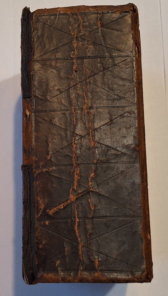 Biblia praktycznie kompletna (w kopii jedynie karta tytułowa ST oraz 1 karta wstępu). Karta ze spisem treści ST podklejona ze stratą na tekście. Kilka stron NT z lekko postrzępionymi krawędziami. Większe przycięcia marginesów. Karta 303/304 NT wstawiona między karty 291/292 oraz 293/294. Ogólnie stan kart dobry, niekiedy są widoczne jakiś stare zaplamienia czy zabrudzenia (tylko karta ze spisem treści NT z wyraźnym zabrudzeniem). Na pustej karcie, na końcu pozycji, kilka linijek ręcznie wpisanej kroniki rodzinnej z XIX wieku. Exlibris. Oprawa skórzana z epoki z delikatnymi tłoczeniami, z niewielkim podklejeniem skóry od lewej strony krawędzi oraz lekkimi pęknięciami i obtarciami. Stara wyklejka, w połowie podklejona białym papierem, który uległ przetarciu.