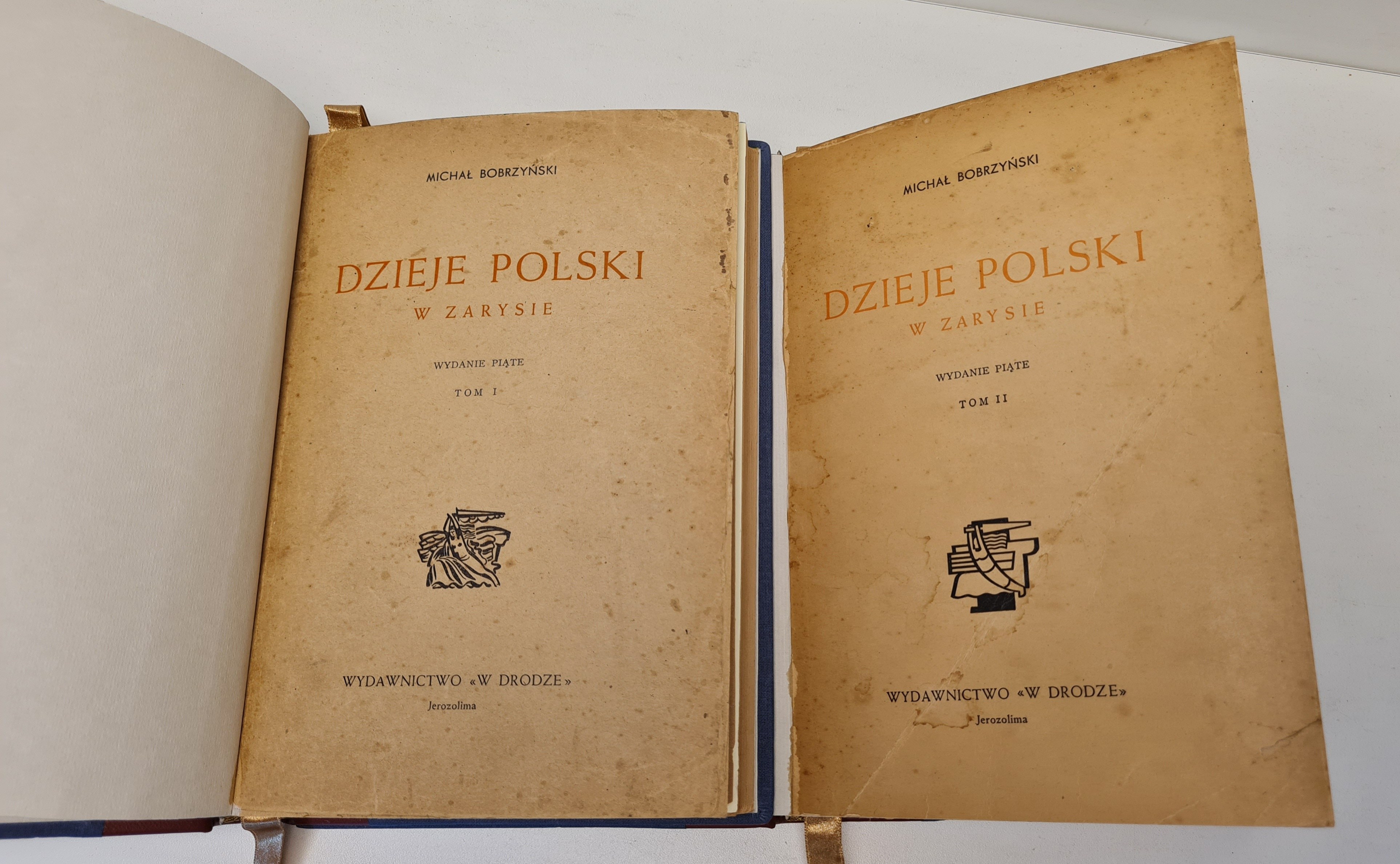 Wydawnictwo <>, Jerozolima 1944. Wym.24,5x17,5cm; stron 292, 324. Oprawa współczesna(zdobiona)z zachowaniem oryginalnych okładek brosz., barwione górne obcięcie kart. Naderwanie karty tyt. w t.I, podpis własnościowy, nieliczne przybrudzenia.