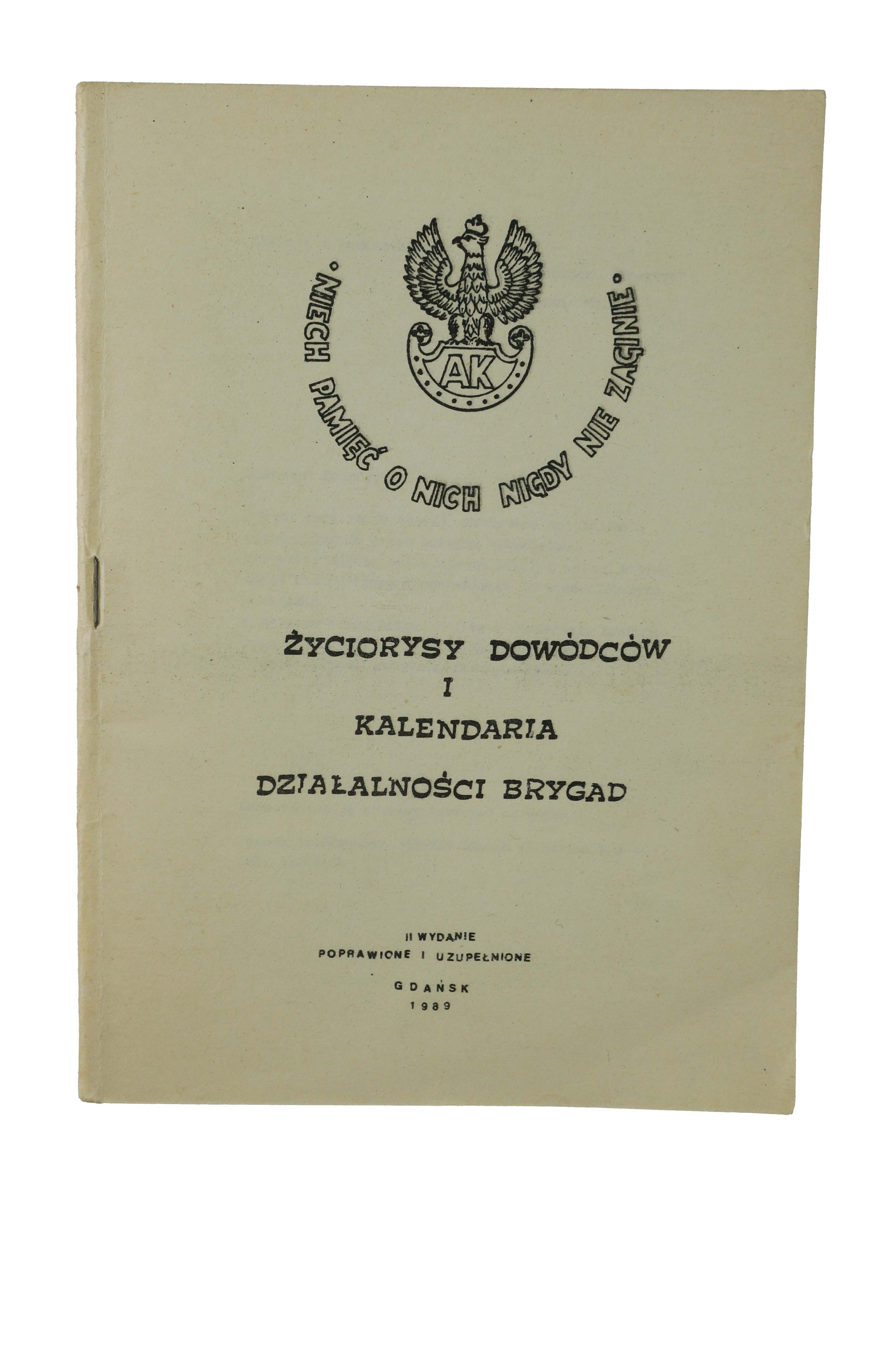 Życiorysy dowódców i kalendaria działalności brygad [okręgu wileńskiego] - Janusz Bohdanowicz i Olgierd Christa, Gdańsk 1989, wydanie II poprawione i uzupełnione, f. 14,5x20cm