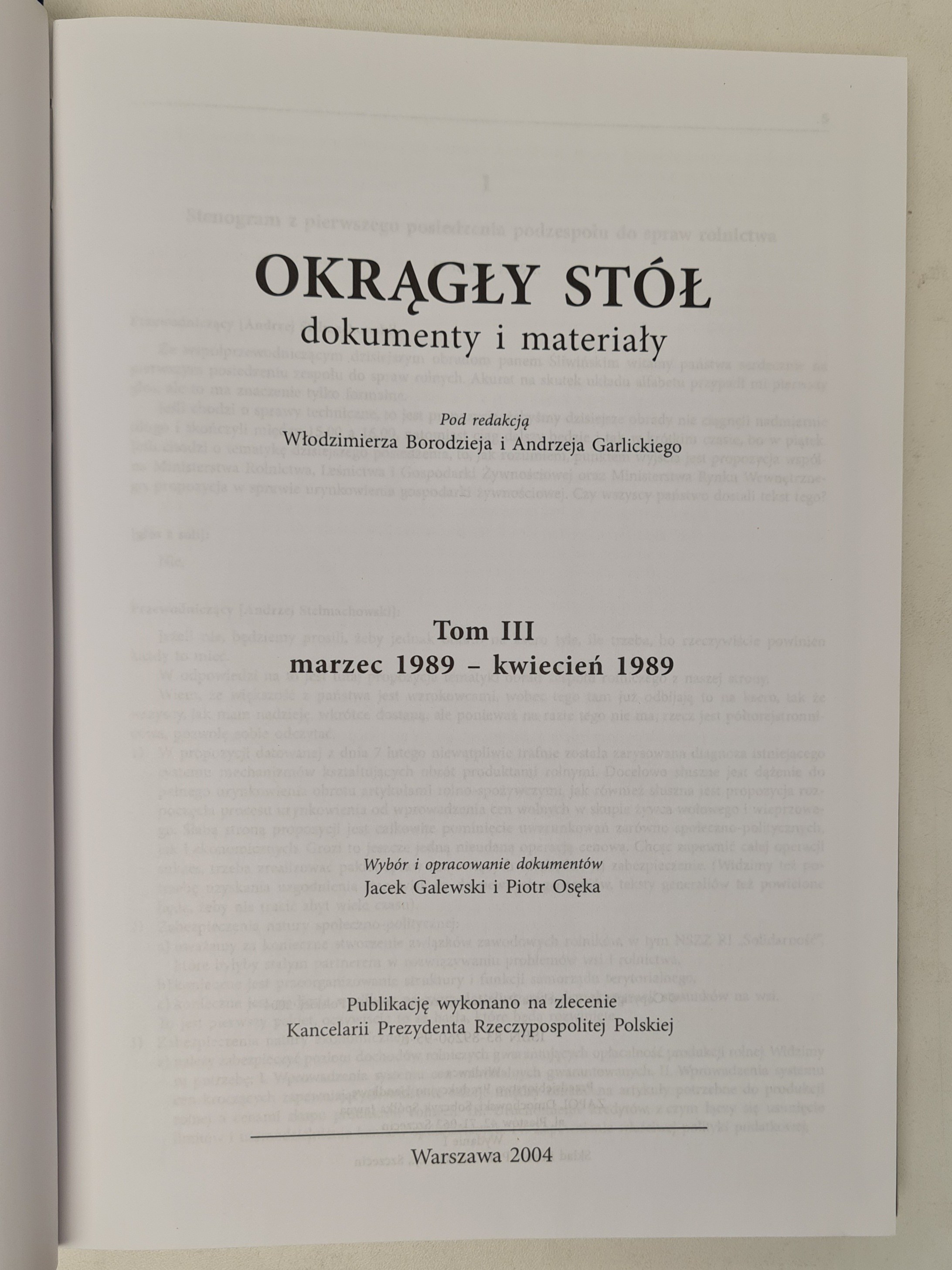 [red.] BORODZIEJ Włodzimierz, GARLICKI Andrzej - OKRĄGŁY STÓŁ. DOKUMENTY I MATERIAŁY