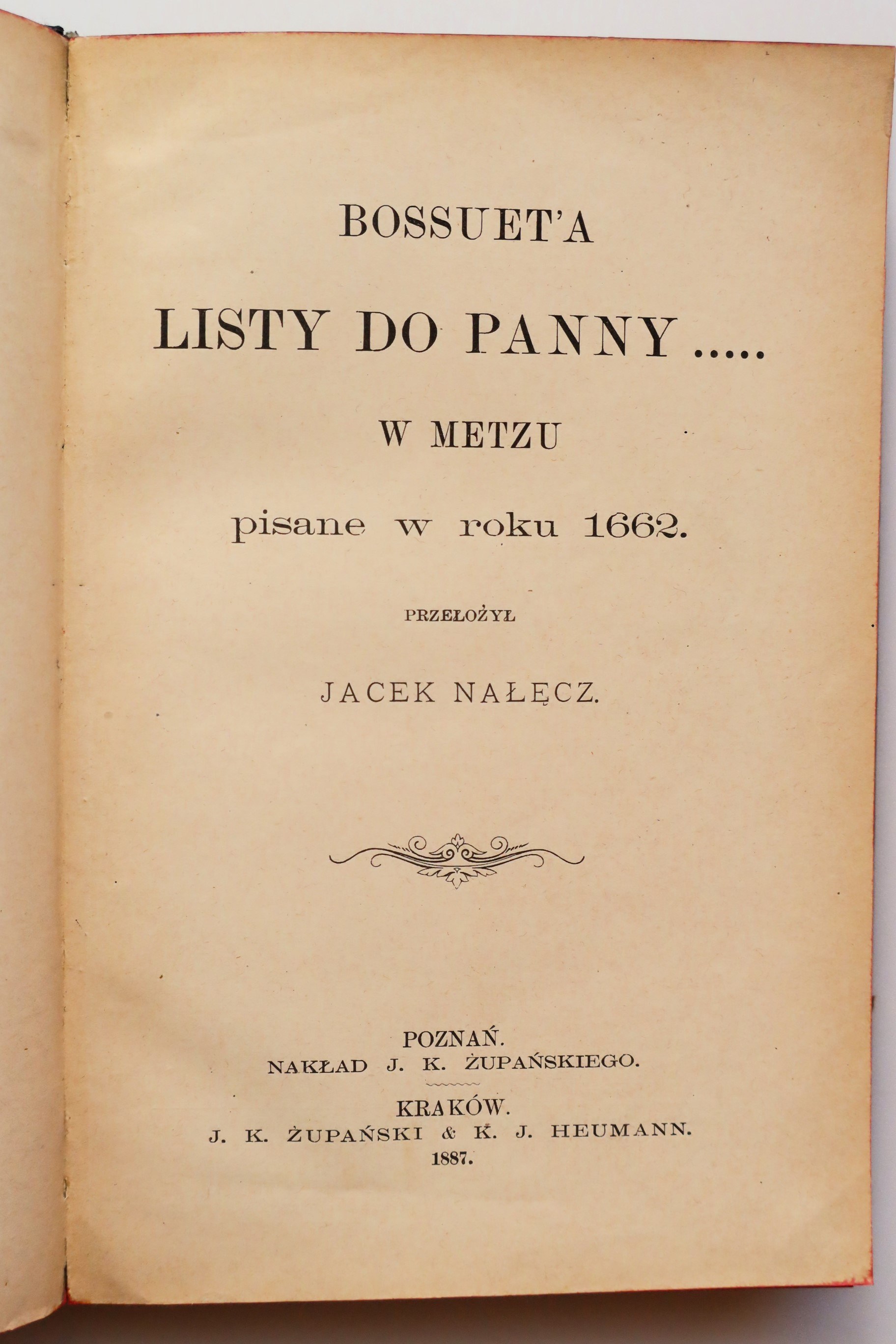 Przełożył JACEK NAŁĘCZ, Poznań, nakład J. K. ŻUPAŃSKIEGO, Kraków J. K. ŻUPAŃSKI & K. J. HEUMANN. 1887, s. 315, wym. 13,5 x 20,5, oprawa introligatorska z epoki, stan dobry.