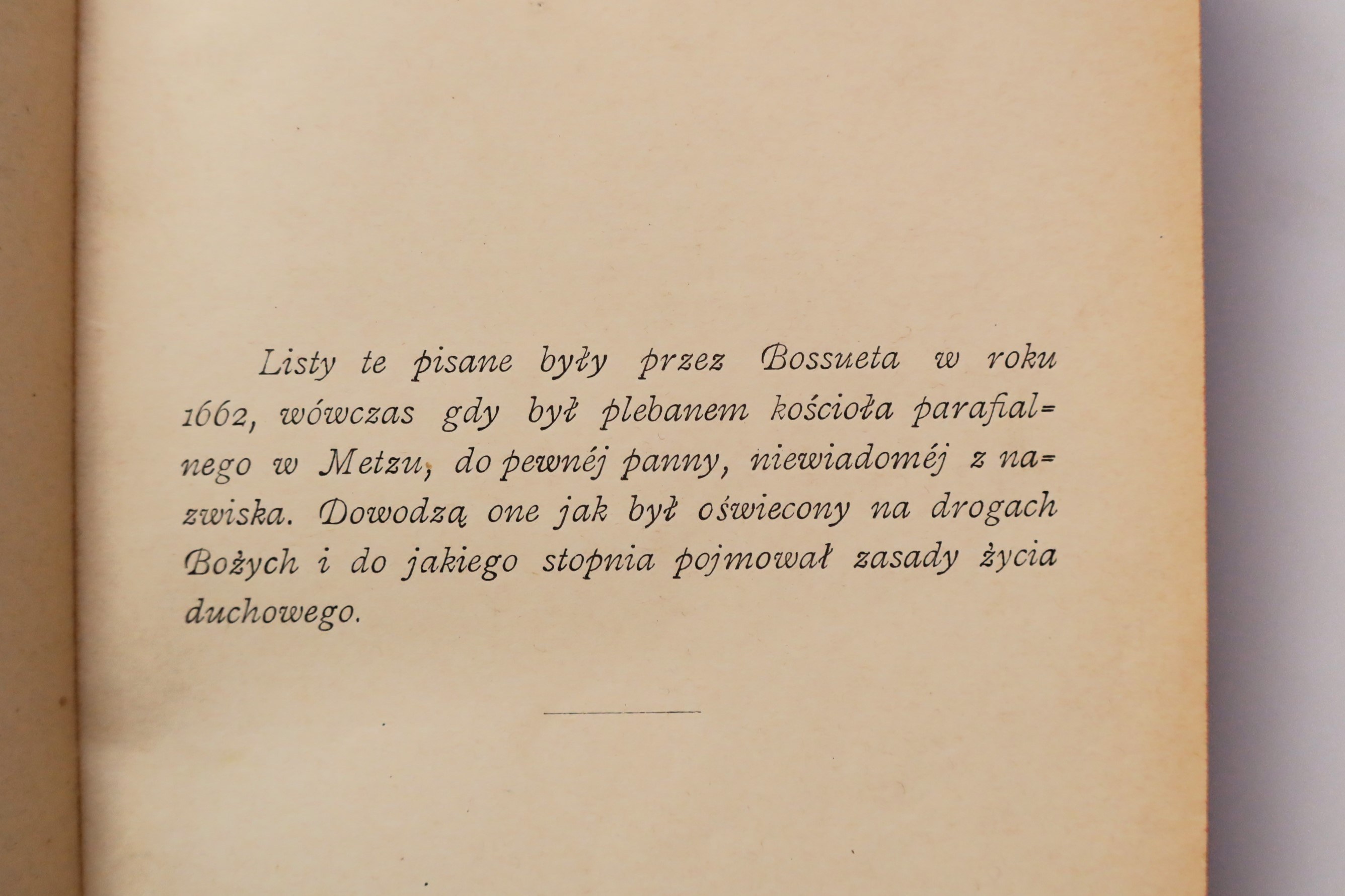 Jacques-Bénigne Bossuet (1627-1704) – francuski duchowny katolicki, biskup, teolog, wychowawca i nadworny kaznodzieja Ludwika XIV, a także wpływowy myśliciel polityczny, według którego najlepszym i najbardziej naturalnym ustrojem miała być monarchia absolutna; członek Akademii Francuskiej. Lata 1652-57 spędził w Metzu, jako archidiakon. W połowie Metz był miastem protestanckim. Pierwszy druk pism Bossueta był potępieniem tez hugenockiego pastora Paula Ferry (1655). W czasie pobytu w Metzu wielokrotnie angażował się w dyskusje z hugenotami i czasem też z Żydami. Jego marzeniem stało się przekonanie protestantów do powrotu na łono Kościoła Rzymskiego. W 1681 roku Bossuet został biskupem Meaux, skad pochodzą dalsze listy.