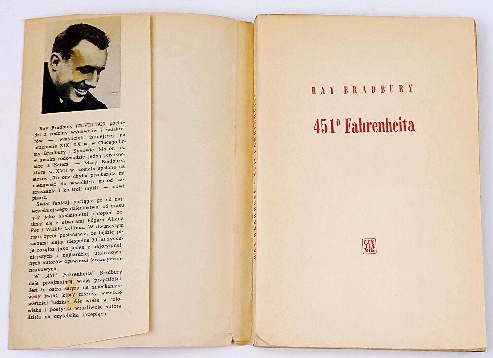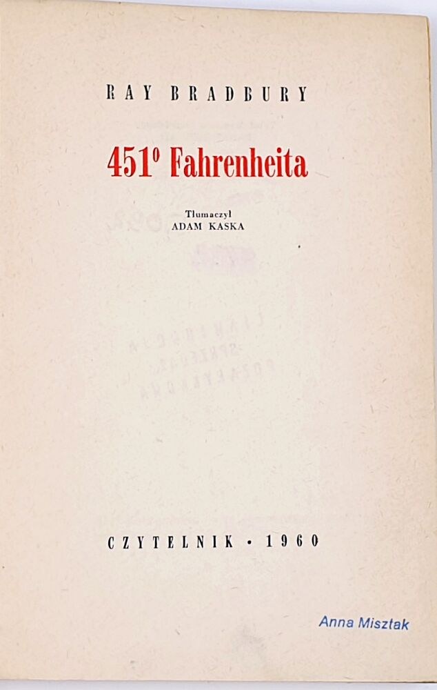 451 stopni Fahrenheita, oryg. Fahrenheit 451 – powieść Raya Bradbury'ego z roku 1953, dystopia. Akcja książki rozgrywa się w świecie, gdzie czytanie książek i krytyczne myślenie są zakazane. Pierwsza adaptacja filmowa powstała w 1966 roku. Film Equilibrium z 2002 roku był inspirowany fabułą powieści.