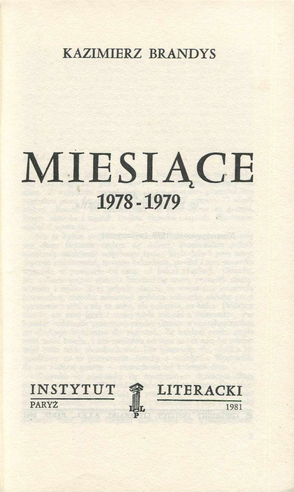 Wydanie pierwsze. Komplet wspomnień pisanych przez Kazimierza Brandysa w latach 1978-1987, najpierw w Polsce, a następnie na emigracji.