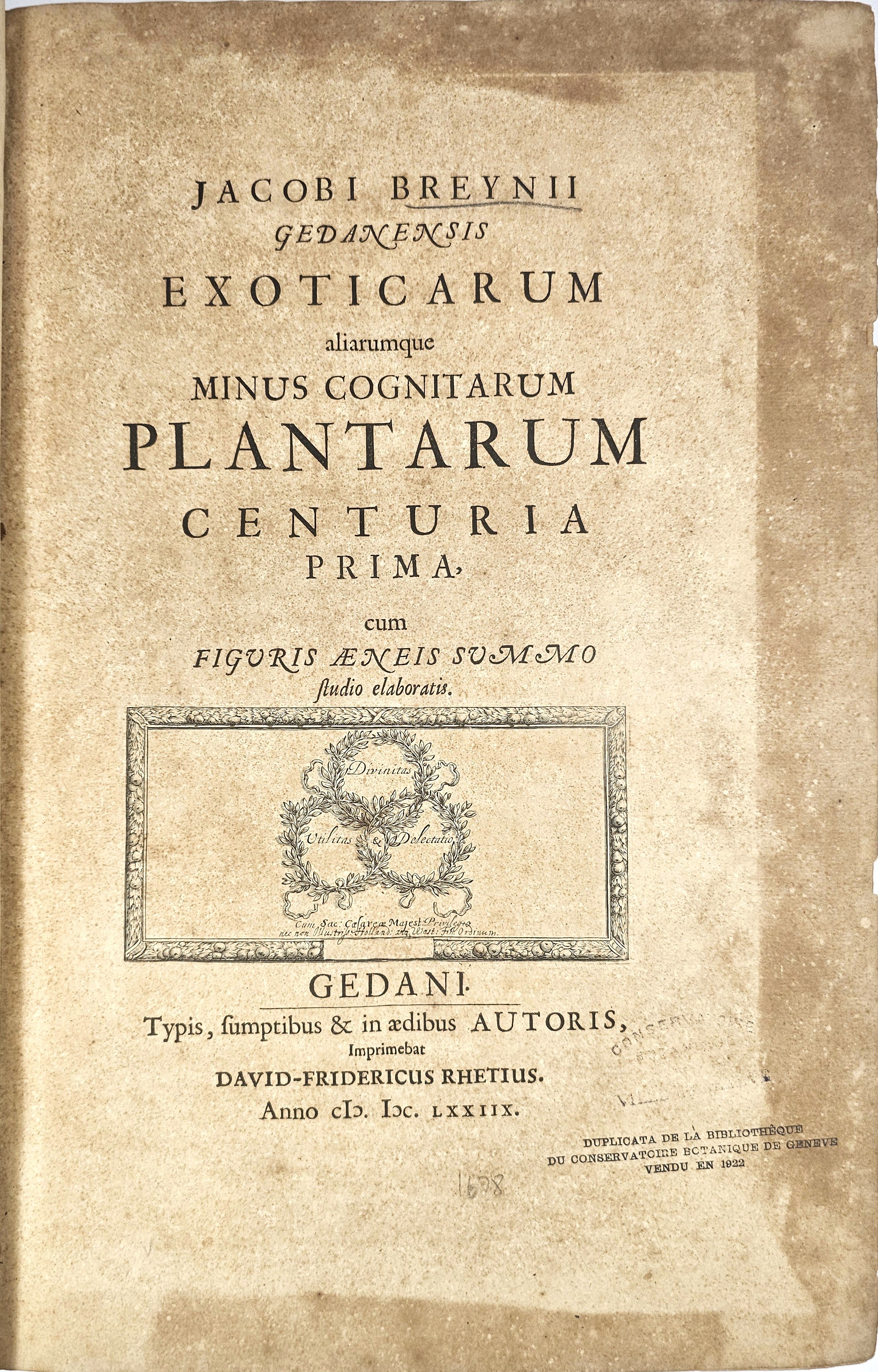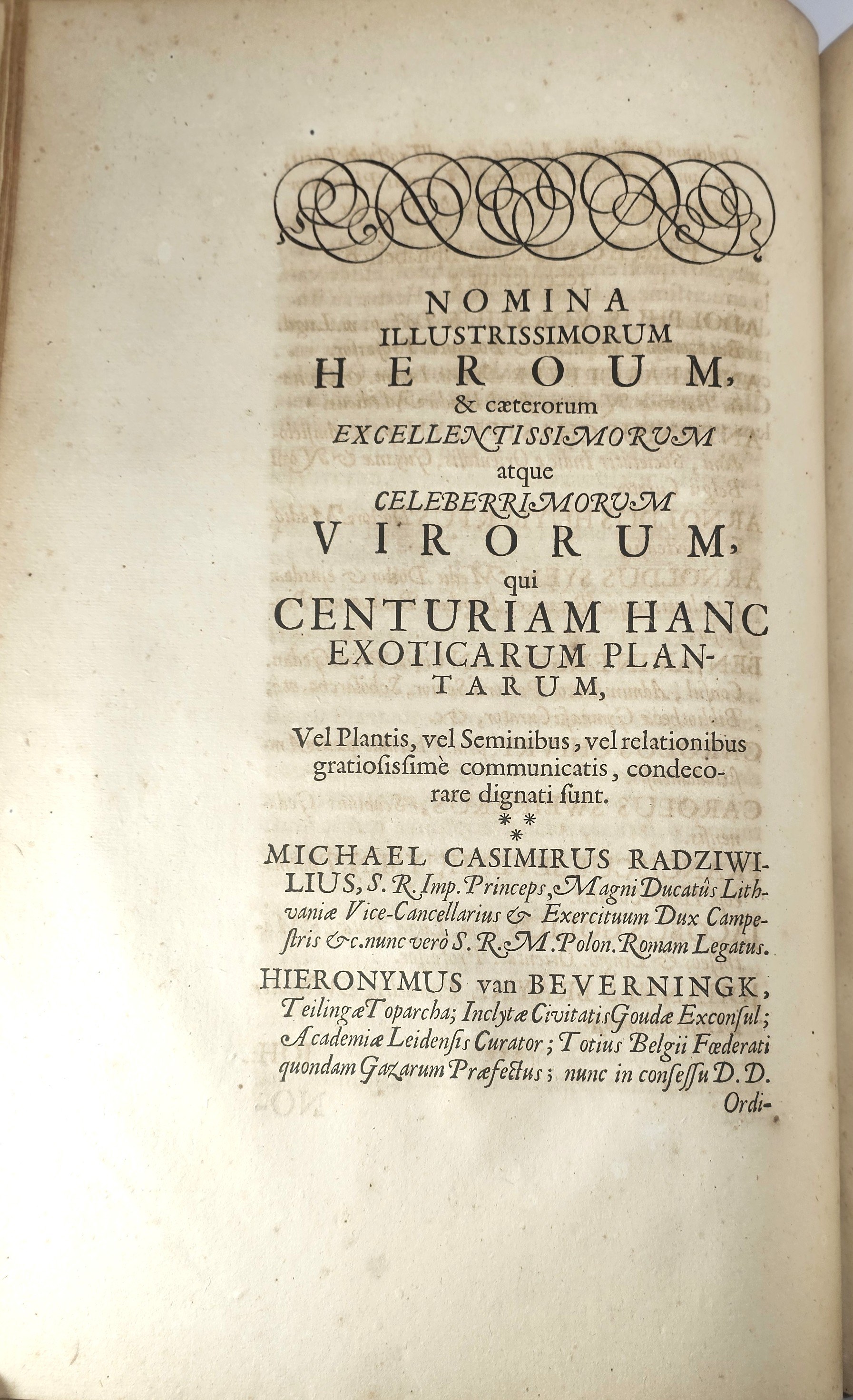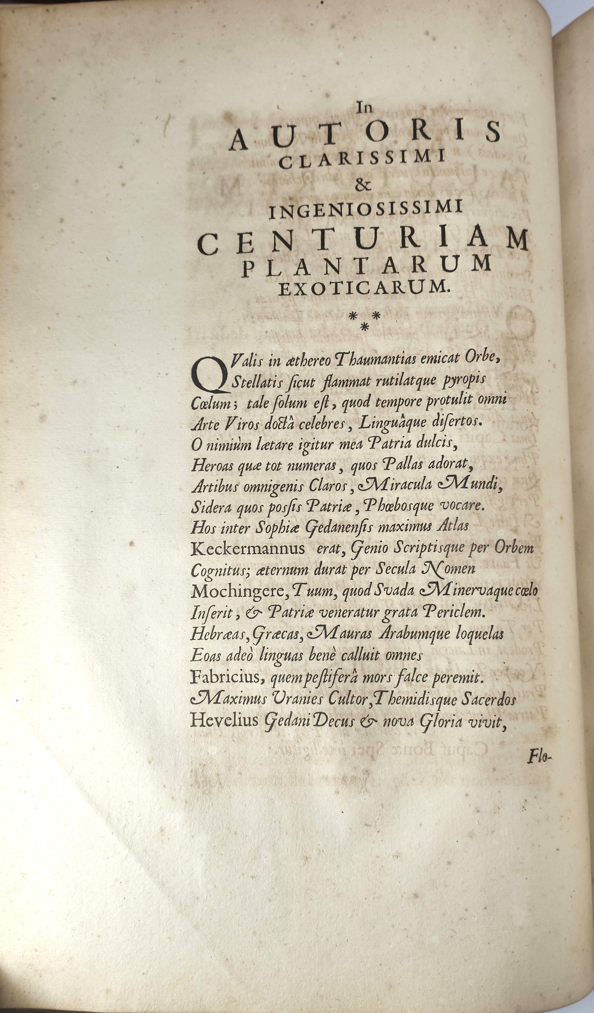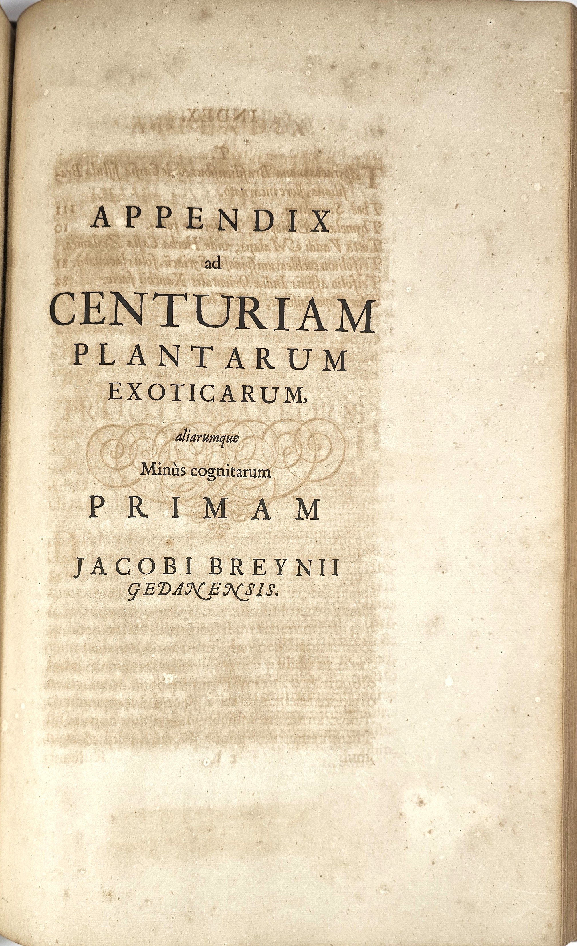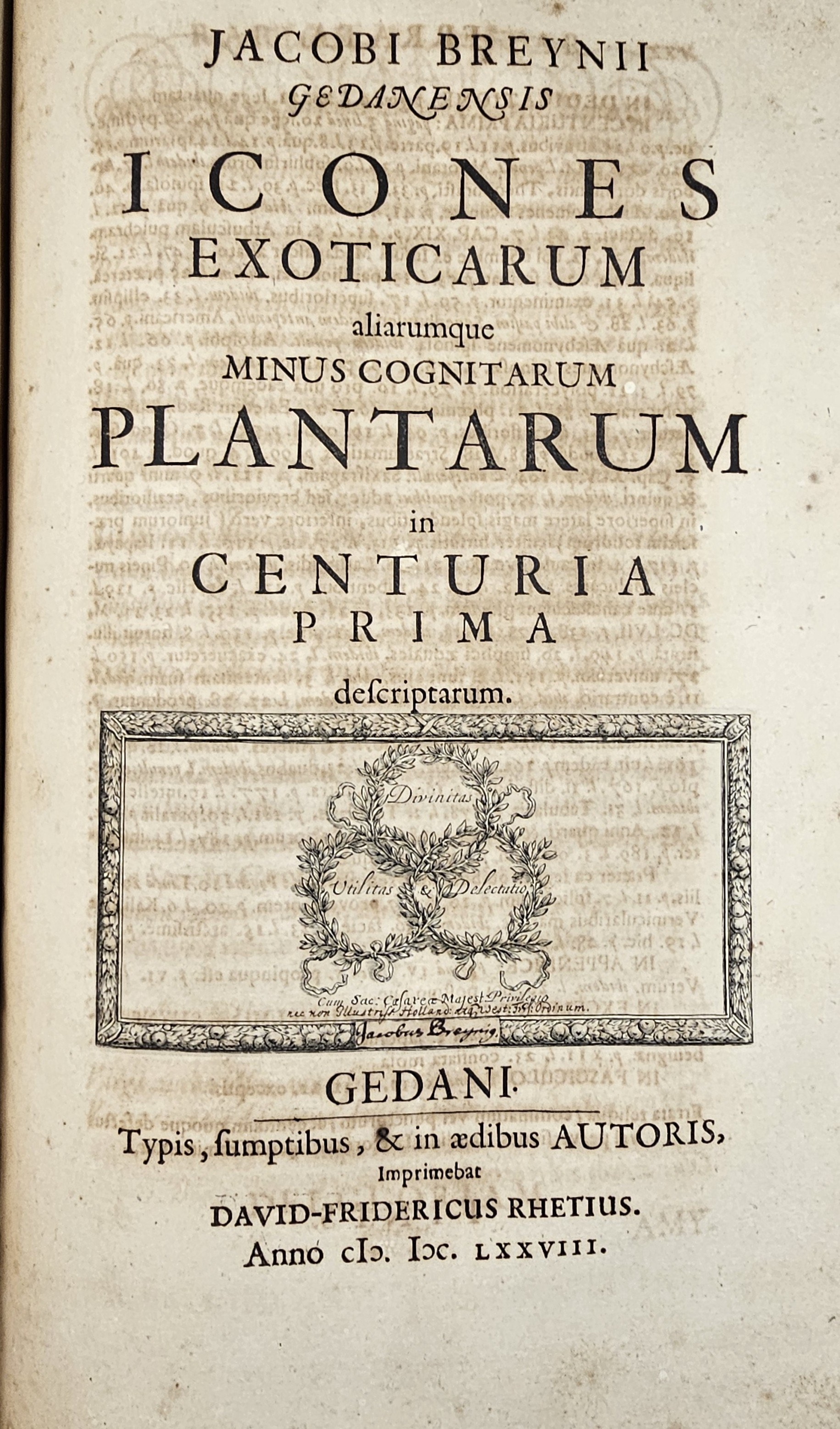 Szczegółowe kompendium botaniczne, opisujące ponad 100 gatunków roślin. Zawiera opisy roślin tropikalnych i subtropikalnych, kładące nacisk na ich morfologię, siedliska oraz zastosowania lecznicze lub gospodarcze. Wśród omawianych roślin: storczyki i inne epifity, opisane ze względu na ich unikalne właściwości i walory estetyczne, palmy: kokosowe, daktylowe, ananasy, banany, odmiany cytrusowe. Rośliny lecznicze: w tym chinowiec i inne gatunki o znaczeniu farmakologicznym, przyprawy: kakao, wanilia, pieprz i wiele innych. Autor (1637-1697) botanik gdański, pochodzenia niderlandzkiego. W swoich badaniach zajmował się głównie roślinami egzotycznymi, przyczynił się też do poznania flory Gdańska i jego okolic.