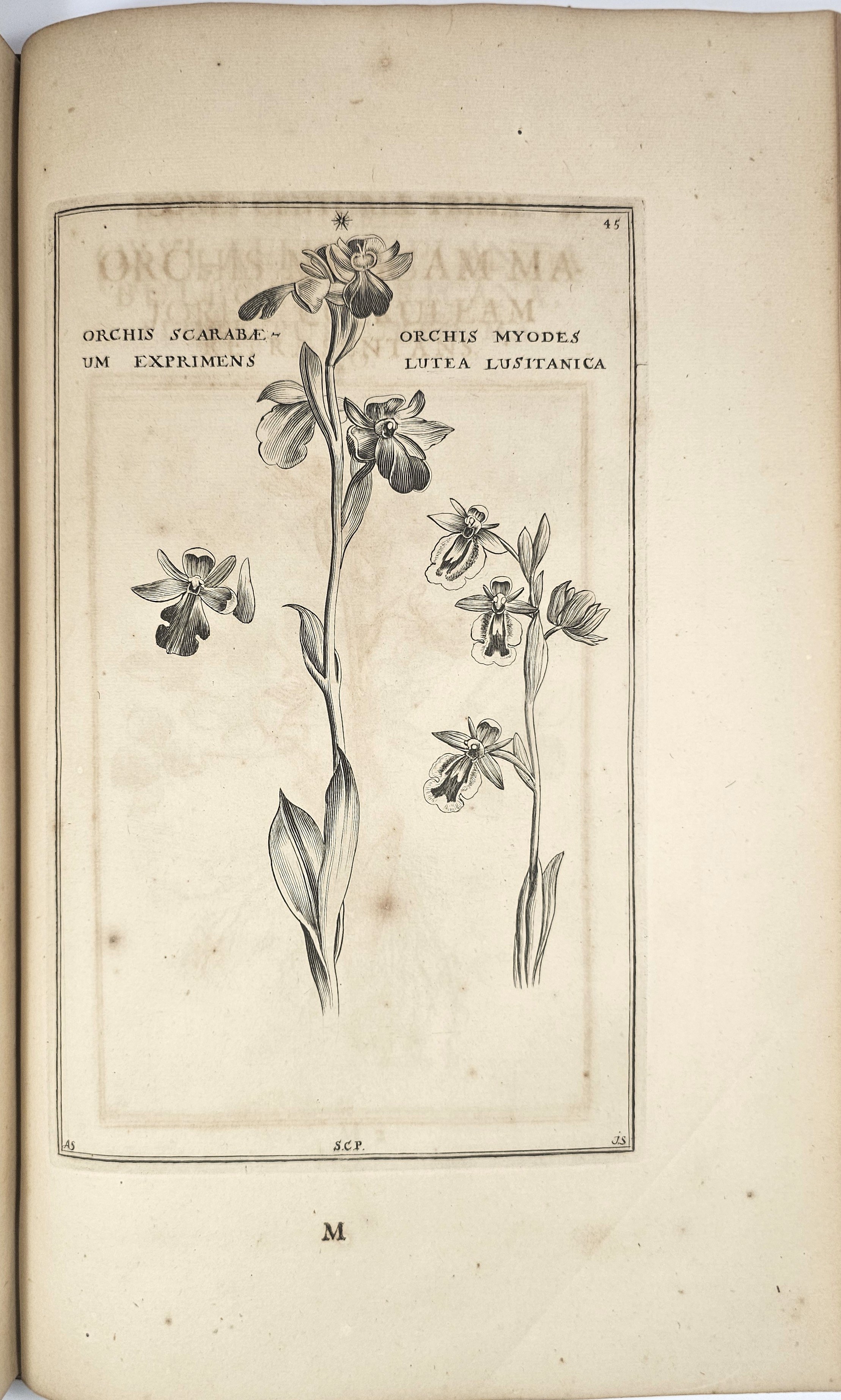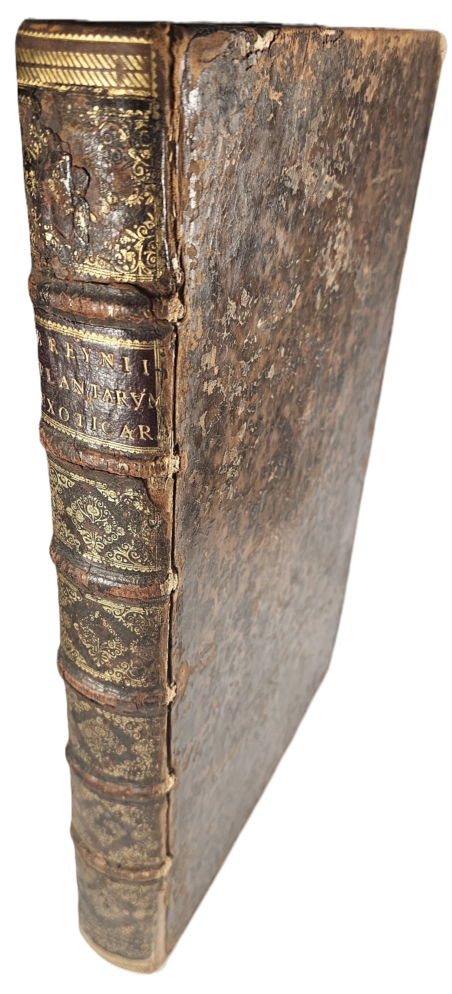 Wym.: 39.5 x 26 cm, frontispis (miedzioryt sygn.: Andr[eas] Stech delin. 1670, L[ambert] Visscher sculp. 1674), 1 k. tytuł., s. [34], 195, s. [11], XXV, s. [1]: Errata, 1 ryc. w tekście, 8 tablic; 1 k. tytuł., s. [2], 101 tablic ( w tym 1 rozkł.); oprawa skórzana z epoki: skóra marmoryzowana, grzbiet 7-polowy z bordowym szyldzikiem ze złoconą tytulaturą, złocone zdobienia, krawędzie kart barwione na bordo. W obu tomach odręcznie wpisane pozwolenia na druk, w części ikonograficznej podpis autora, na niektórych tablicach odręczne zapiski rkp. z epoki. Oprawa nieznacznie przetarta, na przedniej wyklejce ekslibrisy, frontispis i k. tytuł. oraz odciski płyt zabrązowione, na marginesach rdzawe plamki, pomimo to stan dobry, ładny, efektowny egzemplarz bez ingerencji. Bardzo rzadkie. Na polskim rynku antykwarycznym pozycji tej praktycznie nie spotyka się. Ostatni raz, na aukcji warszawskiego Antykwariatu Lamus. Sprzedano ją za 180 tys. zł.