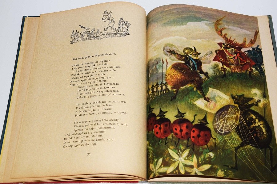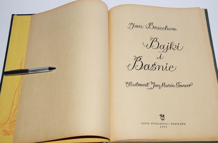 BRZECHWA JAN - BAJKI I BAŚNIE. Piękne całostronicowe ilustracje Jan Marcin Szancer. WYDAWNICTWO NASZA KSIĘGARNIA, WARSZAWA 1955r., str. 66, [2]; 29,5cm. Jan Marcin Szancer ambasador wyobraźni, poz. 43. OPRAWA TWARDA PÓŁ-PŁÓCIENNA, OZDOBNE WYKLEJKI. STAN Bardzo dobry-/Dobry+, niewielkie przetarcia krawędzi oprawy