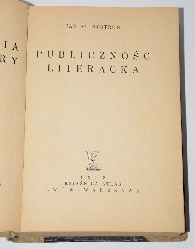 BYSTROŃ ST. JAN - PUBLICZNOŚĆ LITERACKA. KSIĄŻNICA-ATLAS, LWÓW-WARSZAWA 1938r., str. [2], 411;