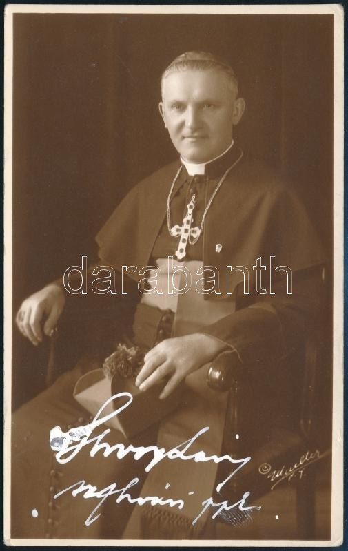 cca 1930 Shvoy Lajos (1879-1968) katolikus pap, székesfehérvári püspök által aláírt fotólap