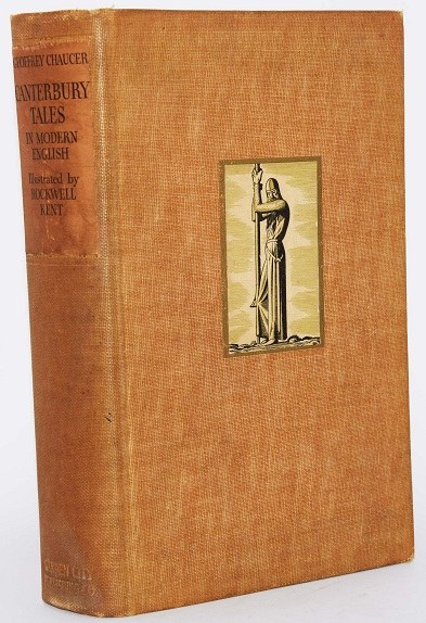 CHAUCER GEOFFREY - CANTERBURY TALES. Rendered into modern english by J. U. Nicolson. With illustrations by Rockwell Kent and an introduction by gordon hall gerould. GARDEN CITY PUBLISHING COMPANY, NEW YORK 1934r., str. [2], XVI, [2], 627; ilustr. na osobnych tabl.; 25cm. OPRAWA TWARDA PŁÓCIENNA, OZDOBNE WYKLEJKI, SZYLDZIK NA GRZBIECIE. STAN Dobry, przerwane przednie wyklejki