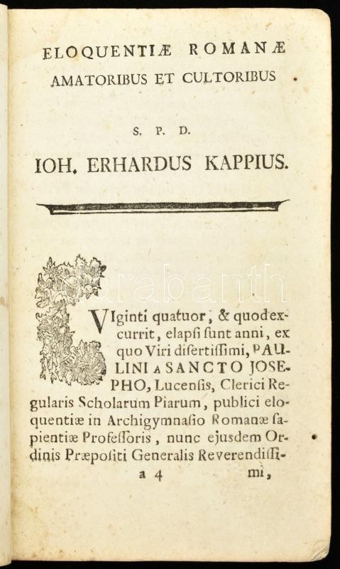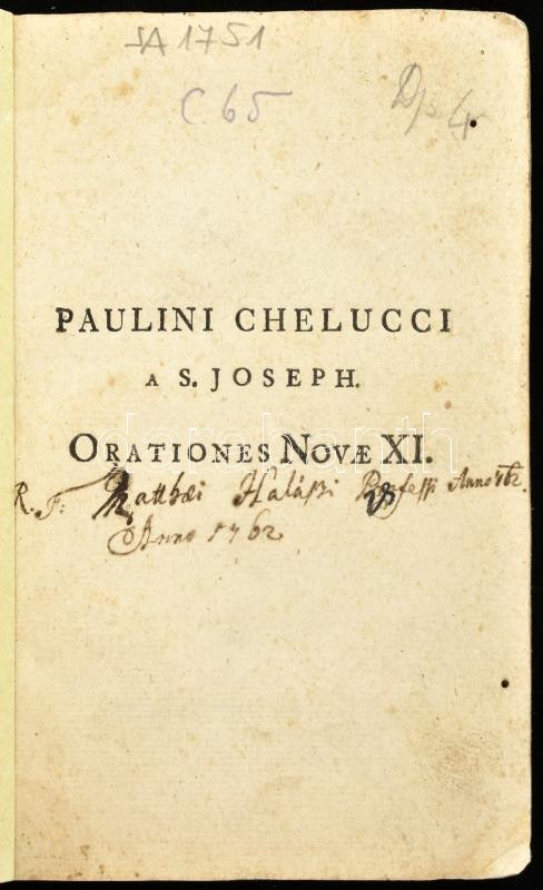 Chelluci, Paulin(o): Orationes Novae XI. - Quas Cl. Erhardus Kappius in Acad. Lipsiensi Eloq. P. P. O. recensuit et praefatus est. - - a Sancto Joseph clerici regularis scholarum piarum. Budae, 1754. Leopoldi Francisci Landerer. Korabelli papírkötésben 186 + 2 p.