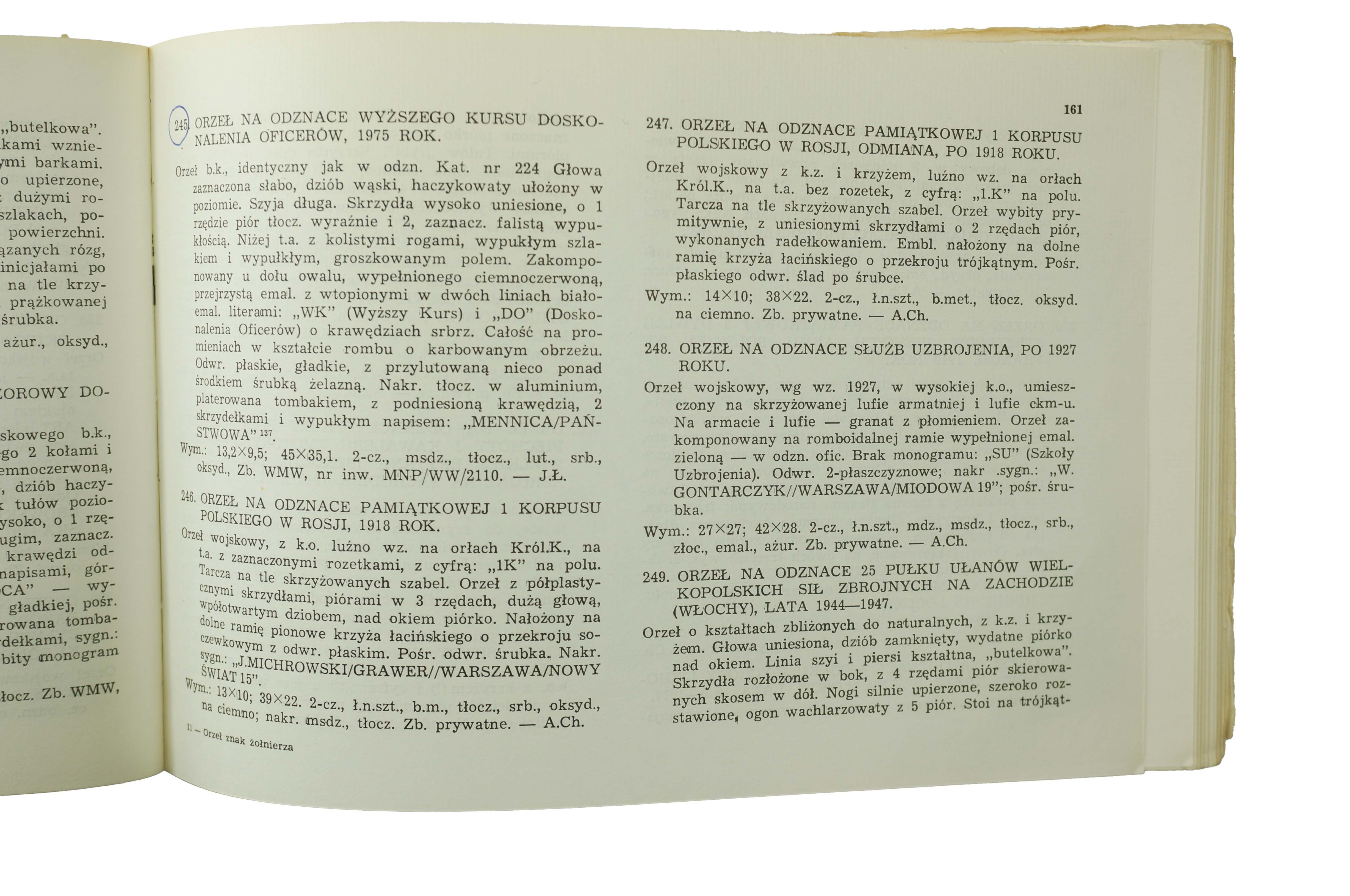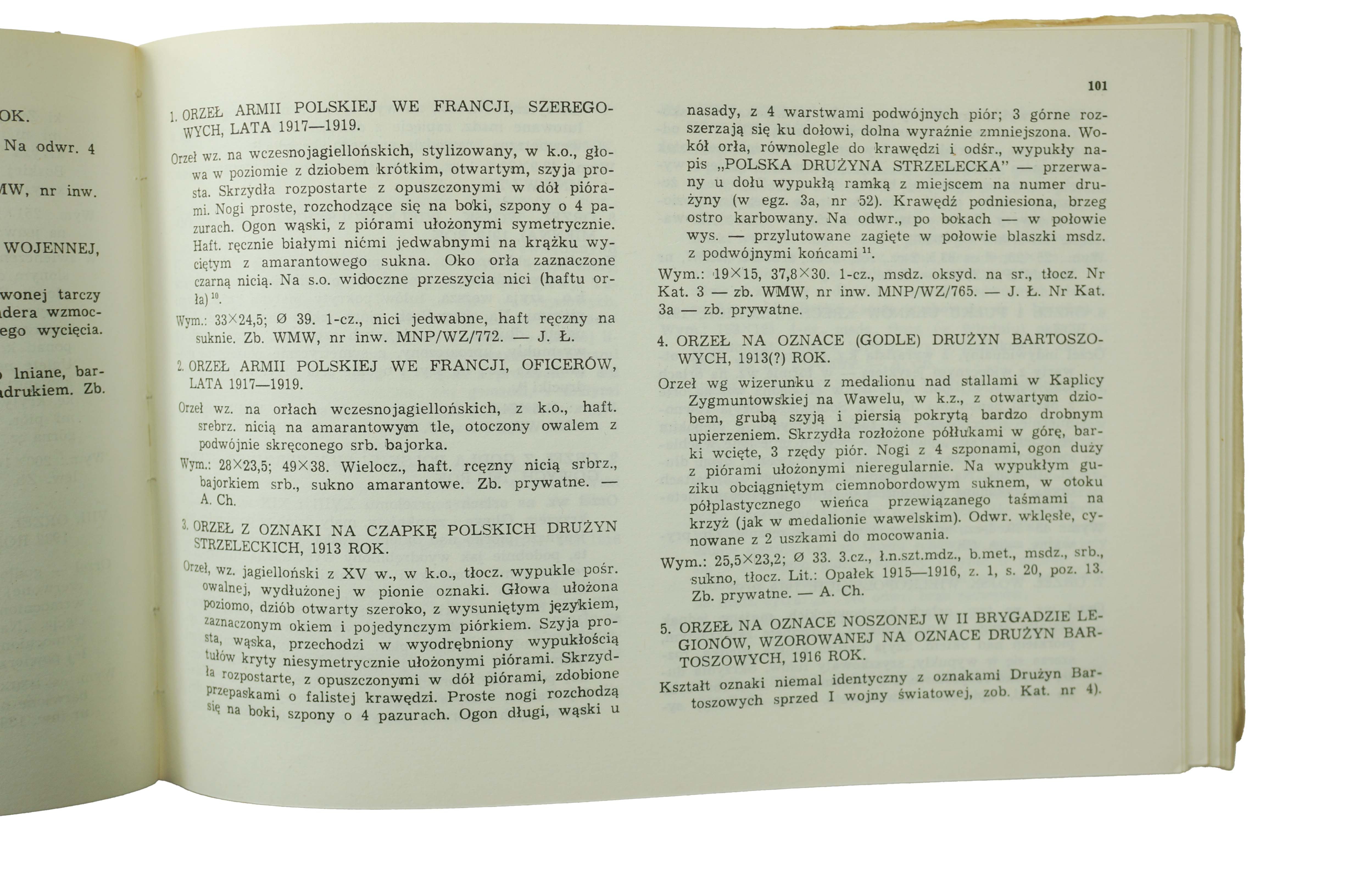 Orzeł - znak żołnierza polskiego. Katalog wystawy w Muzeum Zamkowym w Malborku - Antoni Romuald Chodyński, Muzeum Zamkowe w Malborku, Stowarzyszenie Miłośników Dawnej Broni i Barwy Oddział Pomorski, Malbork 1981-1983, f. 24x16,5cm, s. 218, [30]