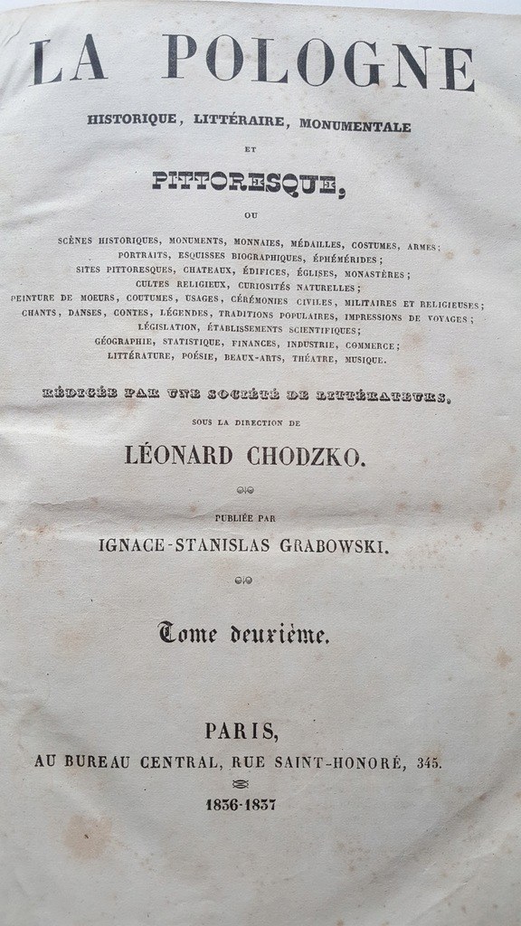 CHODŹKO Leonard - LA POLOGNE HISTORIQUE, LITTERAIRE, MONUMENTALE ET PITTORESQUE Tom I-III