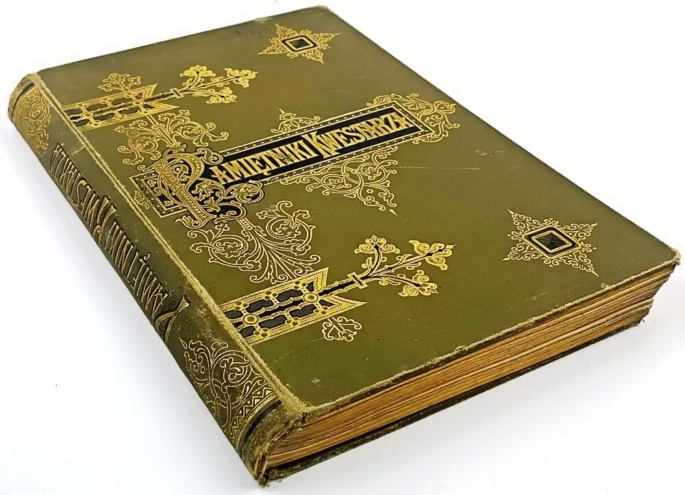 TWARDA OPRAWA WYDAWNICZA Z EPOKI, PEŁNE PŁÓTNO BOGATO ZDOBIONE I TŁOCZONE, SYGNATURA A. OLSZENIAKA INTROLIGATORA KRAKOWSKIEGO.