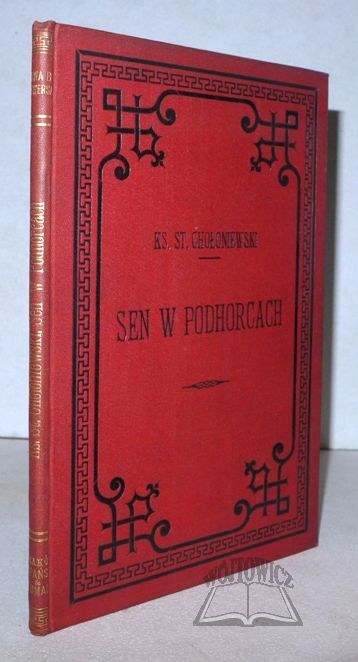 Sen w Podhorcach. Napisał (...). Wyd. drugie. Kraków 1888. Nakład J. K. Żupańskiego & K. J. Heumanna. 8, s. 119, [2], opr. pł. wydawn. Nowa Biblioteka Uniwersalna. Oprawa ozdobna: czerwone płótno, na ...