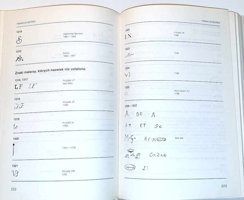 Ksiązka stanowi kompedium wiedzy na temat znaków na porcelanie, prezentująca około 3000 rysunków sygnatur europejskich wytwórni porcelany, z opisem i datowaniem, oraz z dziejami tych wytwórni ABSOLUTNIE NIEZBĘDNA DLA ZNAWCÓW TEMATU !!