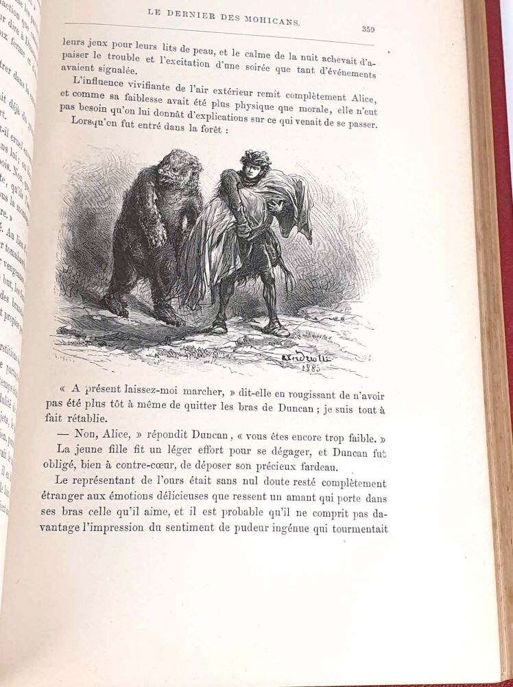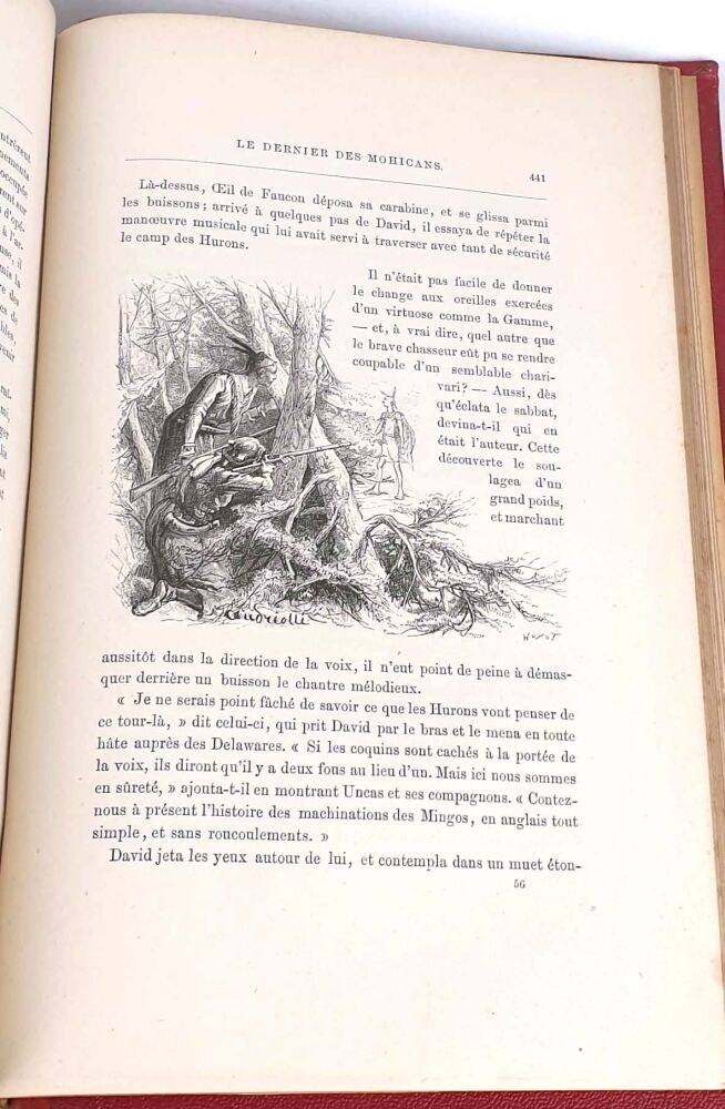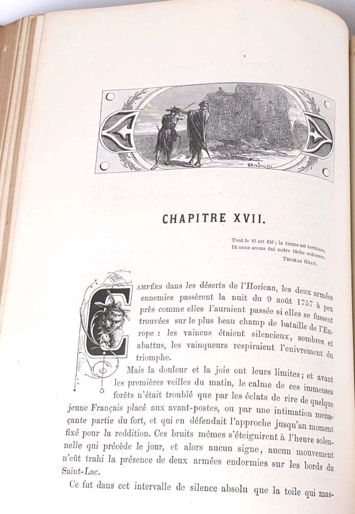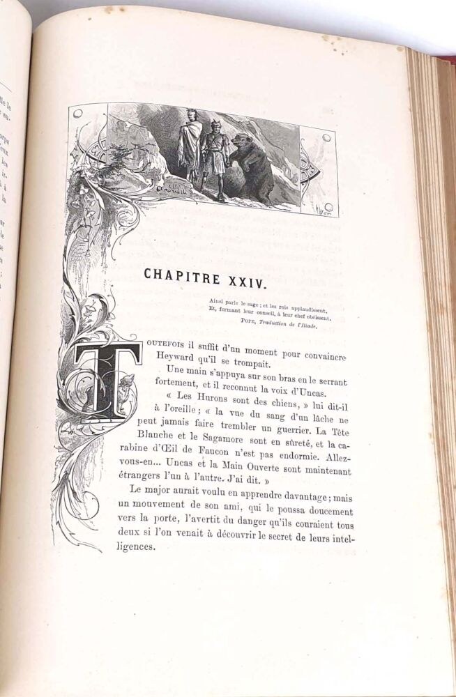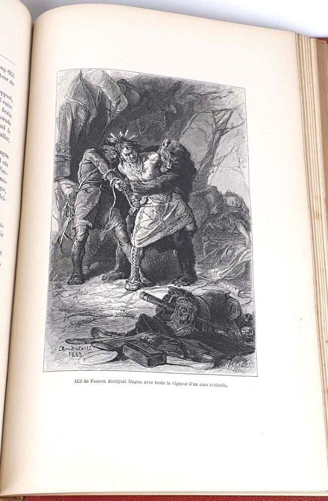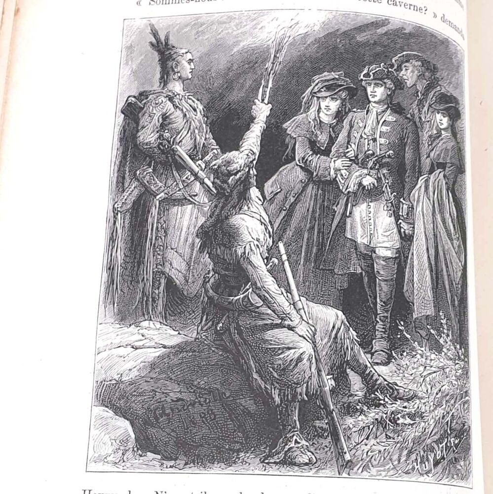 Słynna powieść przygodowa J. F. Coopera [1789-1851], klasyka tego gatunku literackiego, zilustr. przez Michała Elwiro Andriollego [1836-1893], który, mając już ugruntowaną pozycję artystyczną, w latach 1883-1886 pracował w Paryżu dla wyd. Firmin-Didot, zdobywając uznanie i popularność franc. i europejskich miłośników literatury. Rysunki Andriollego rytował Jules Huyot.