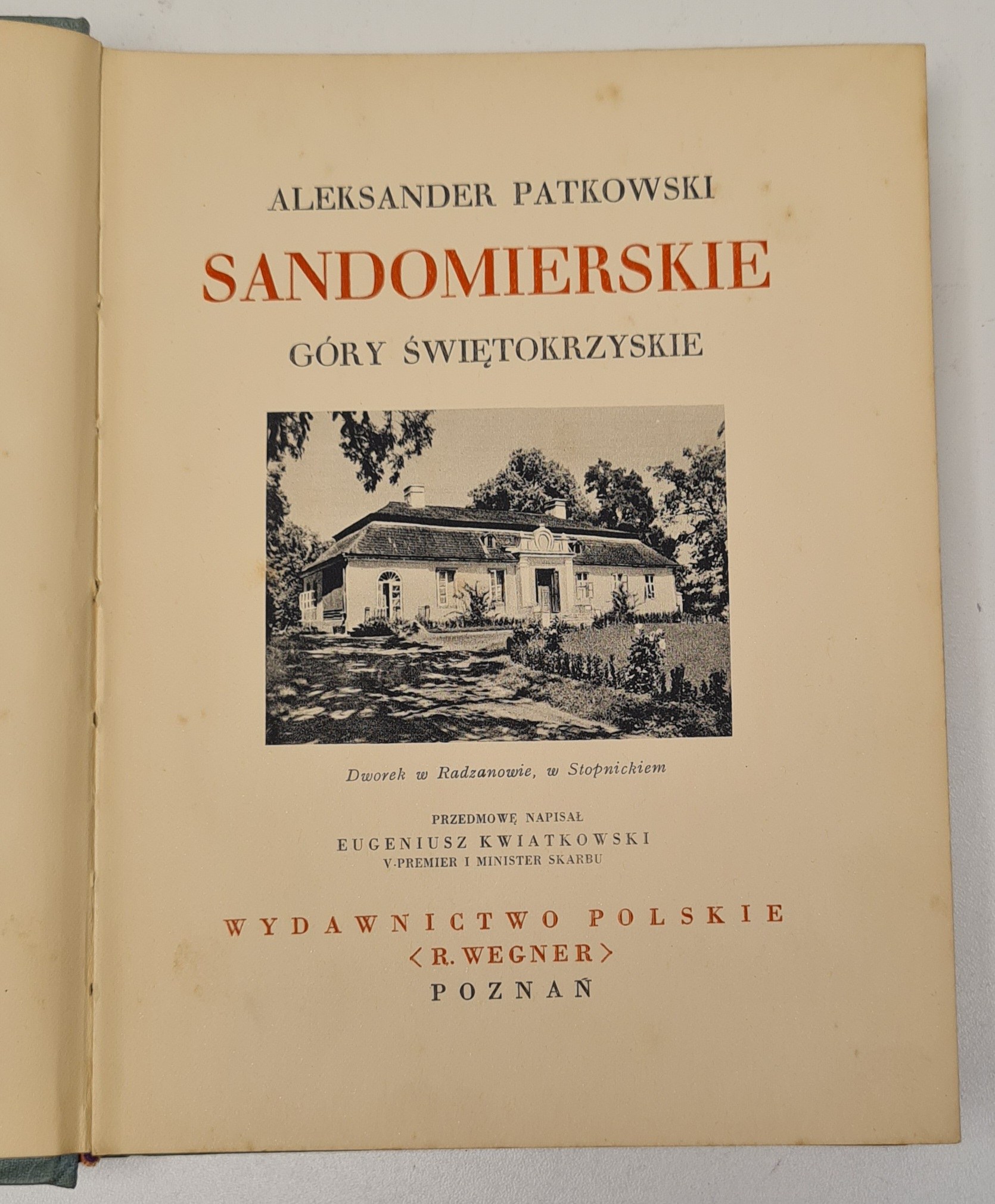 [CUDA POLSKI] Patkowski Aleksander - Sandomierskie Góry Świętokrzyskie, Poznań [1938], Wydawnictwo Polskie < R.Wegner> . Wym. 21 x 16cm. s. [4], 238, [2].Oprawa oryginalna wydawnicza, płótno z herbem powiatu Sandomierskiego na licu oraz zdobieniami i motywami charakterystycznymi dla tego powiatu na grzbiecie. Brak obwoluty. Ogólny stan zachowania dobry +