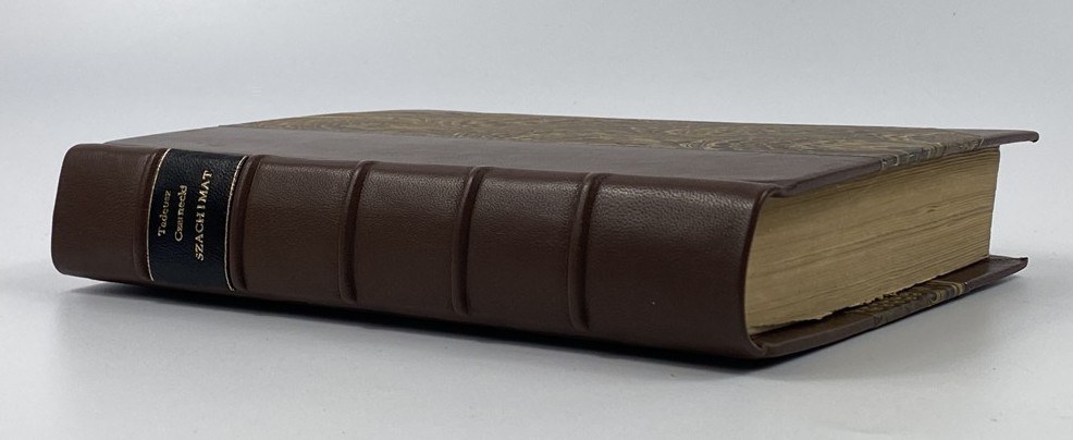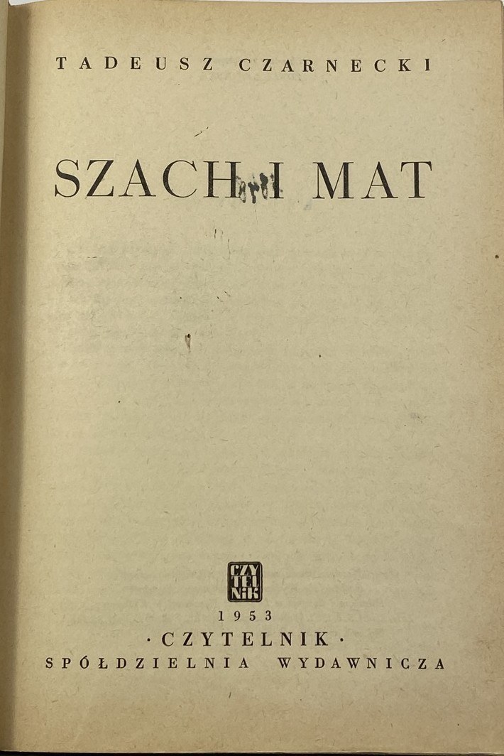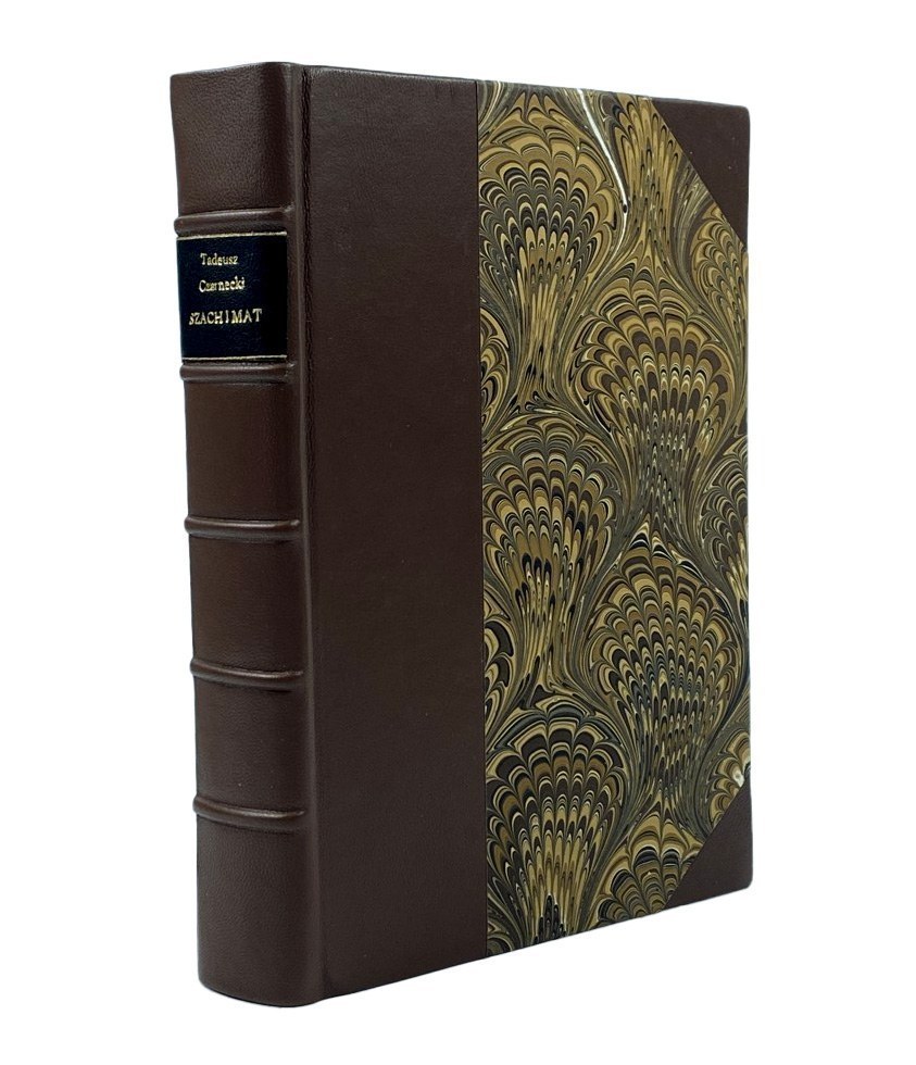 Czarnecki Tadeusz, Szach i mat, Spółdzielnia Wydawnicza "Czytelnik", Warszawa 1953, s. 594, [6], wymiary 15 x 21,5 cm. Półskórek wykonany ręcznie w pracowni Suszek Books.