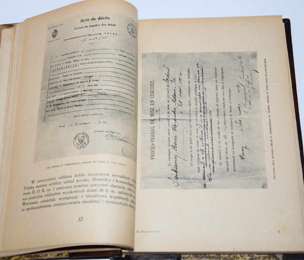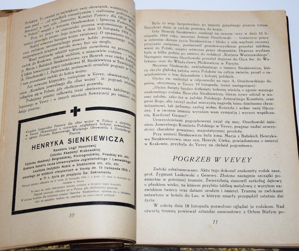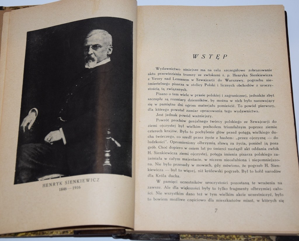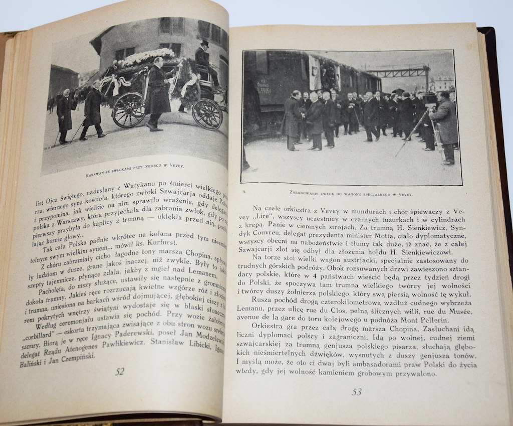 Tytuł: "Na Ojczyzny Łono"...Opis przewiezienia zwłok nieśmiertelnego duchowego przywódcy narodu,genialnego pisarza Henryka Sienkiewicza z Vevey, gdzie zmarł do Warszawy oraz pogrzebu w stolicy i uroczystości żałobnych.