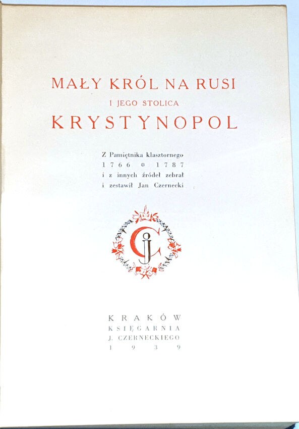 Kraków 1939, Księgarnia J. Czerneckiego, str. 501, ilustr., faksimile i mapek w tekście i poza tekstem 130, winiety, finaliki