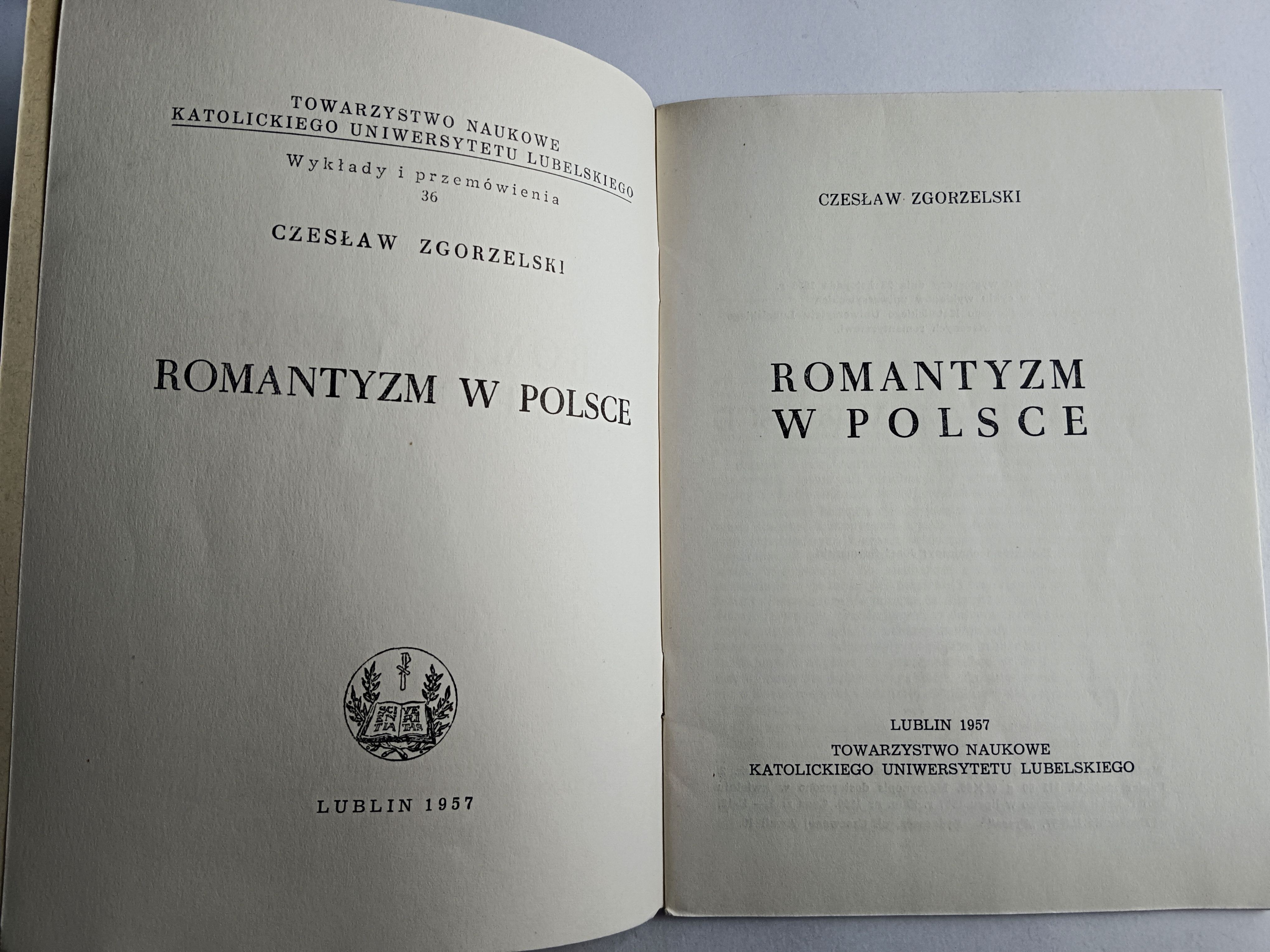 CZESŁAW ZGORZELSKI, ROMANTYZM W POLSCE , LUBLIN 1957