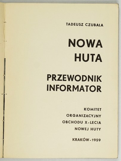 CZUBAŁA Tadeusz - Nowa Huta. Przewodnik informator. Kraków 1959. Komitet Organizacyjny Obchodu X-Lecia Nowej Huty. 16d, s. 109, [11]. brosz.