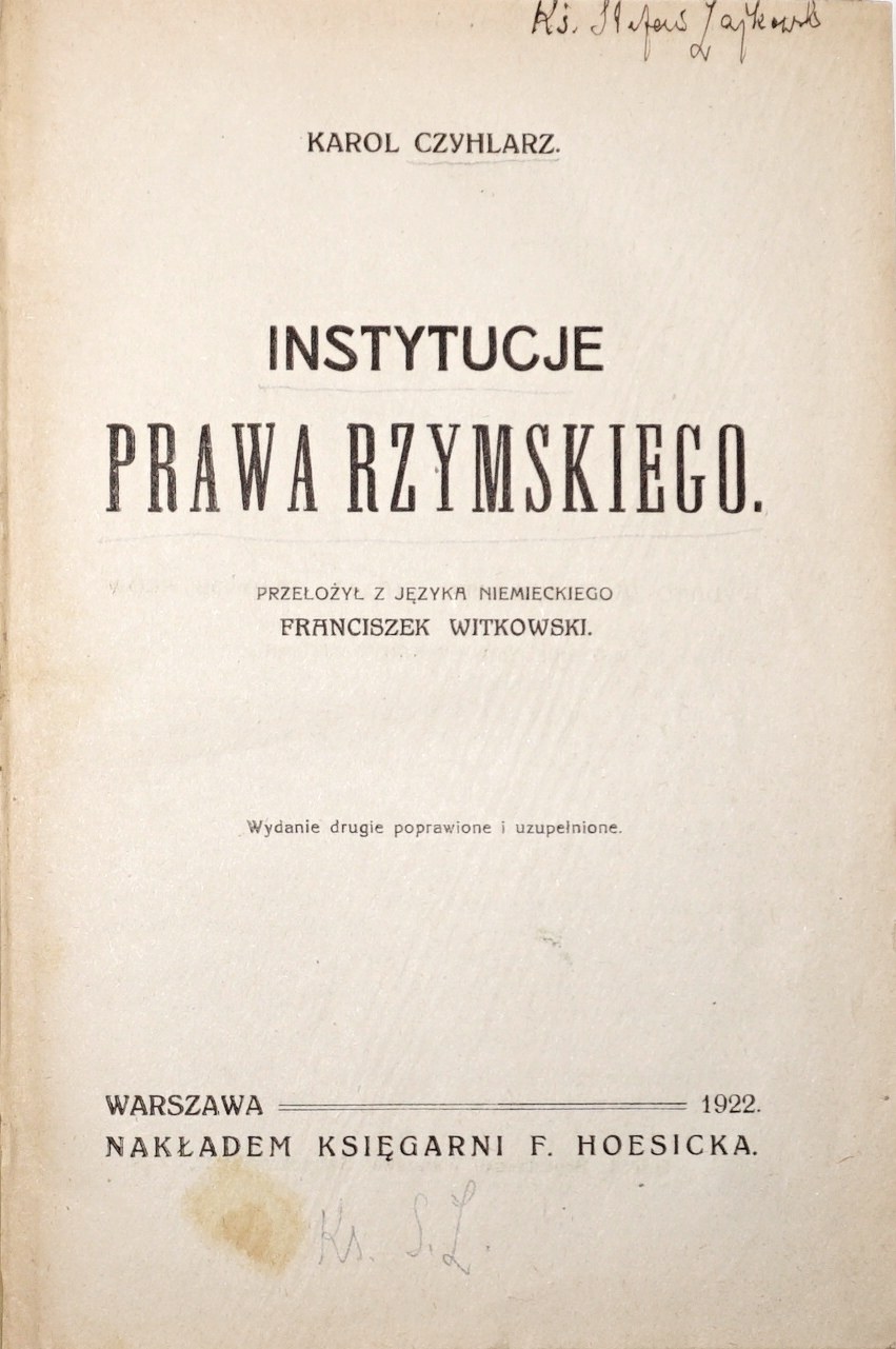 Instytucje prawa rzymskiego / Karol Czychlarz ; przeł. z niem. Franciszek Witkowski.