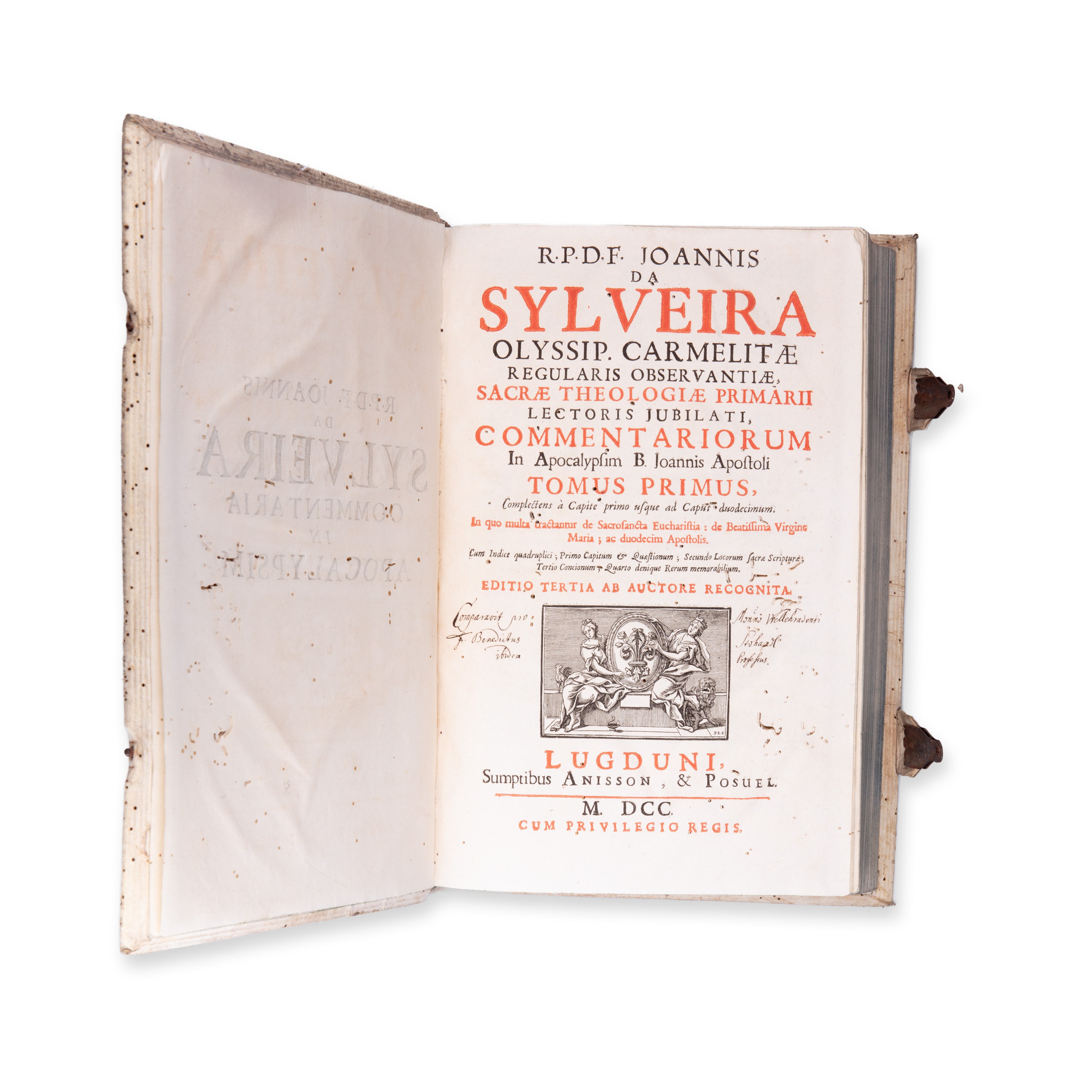 R.P.D.F. JOANNIS DA SYLVEIRA OLYSSIP. CARMELITAE, REGULARIS OBSERVANTIAE, SACRAE THEOLOGIAE PRIMARII LECTORIS JUBILATI, COMMENTARIORUM In Apocalypsim B. Joannis Apostoli: Complectens a Capite primo usque ad Caput duodecimum, In quo multa tractantur de Sacrosancta Eucharistia: de Beatissima Virgine Maria; and duodecim Apostolis. Cum index quadruplici; Primo Capitum [et] Quaestionum; Secundo Locorum sacrae Scripturae; Tertio Concionum; Quarto denique Rerum memorabilia. Tomus primus