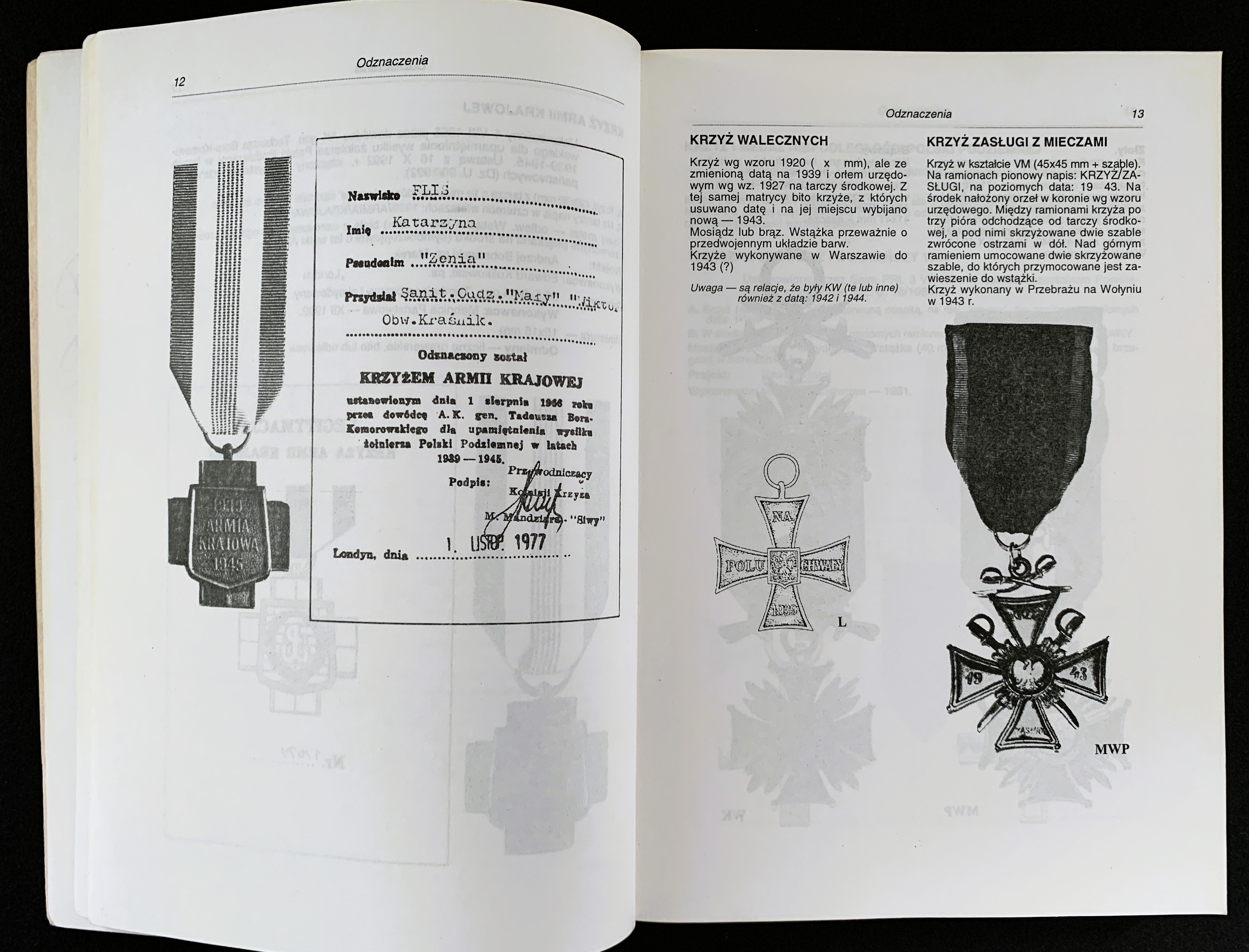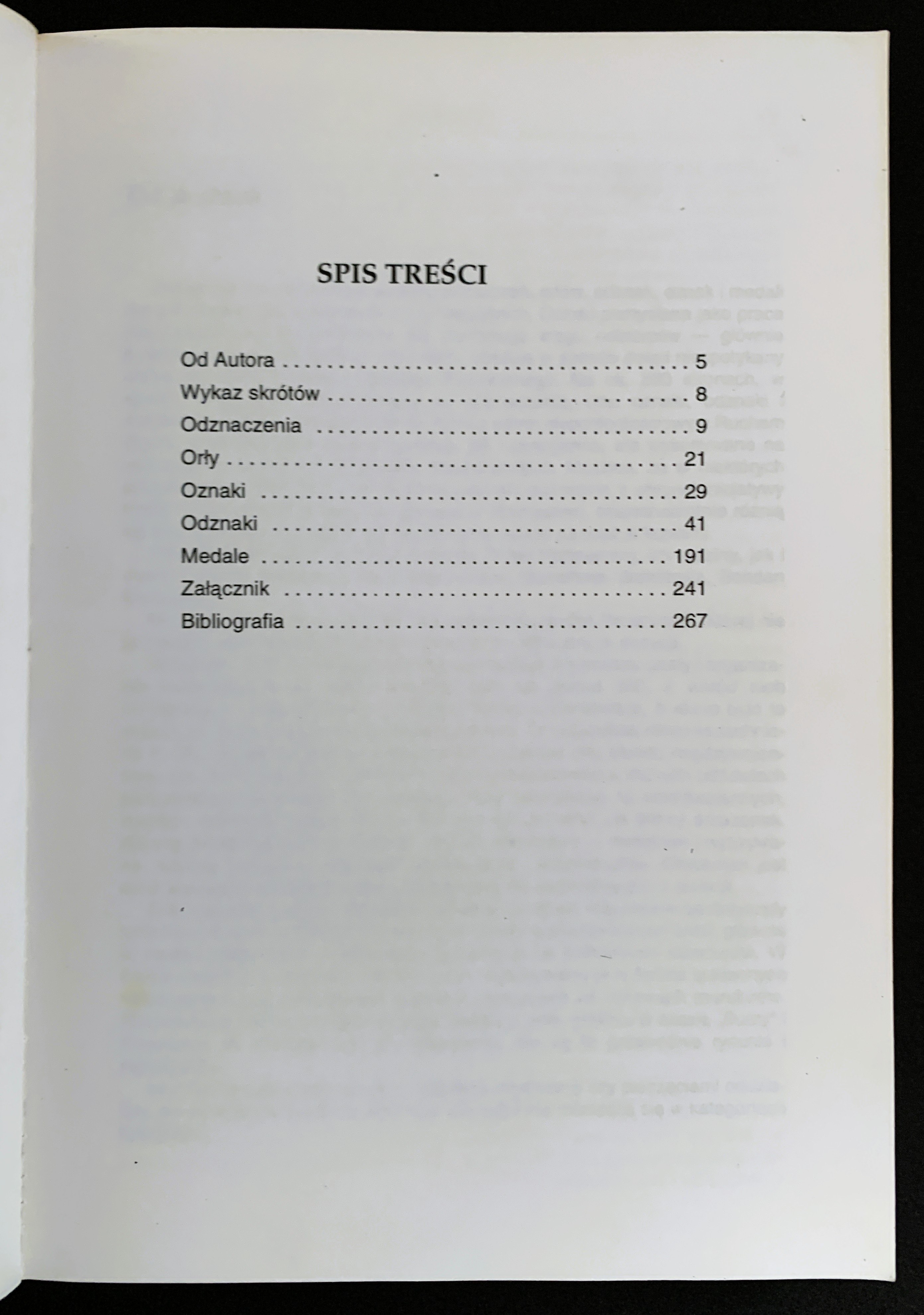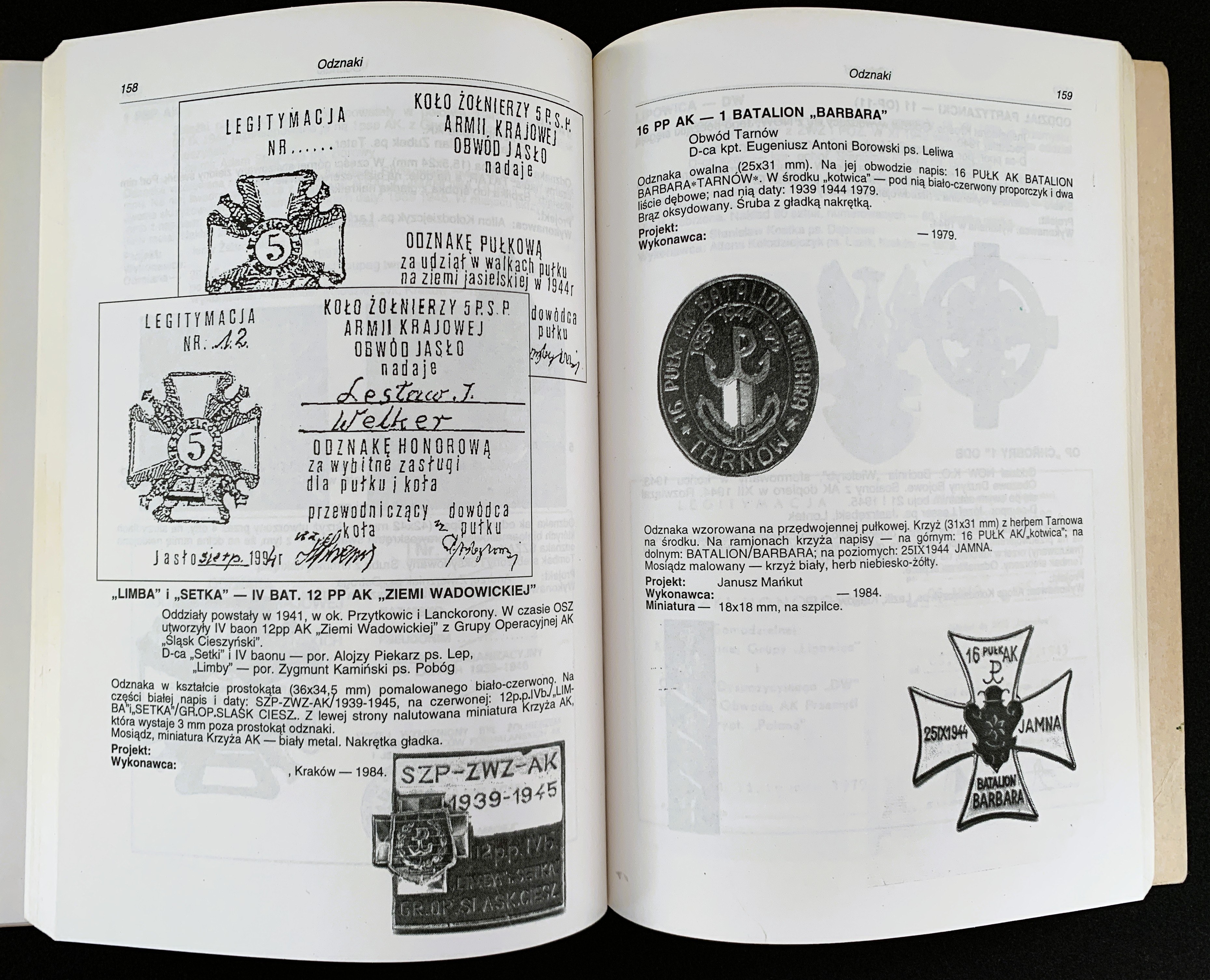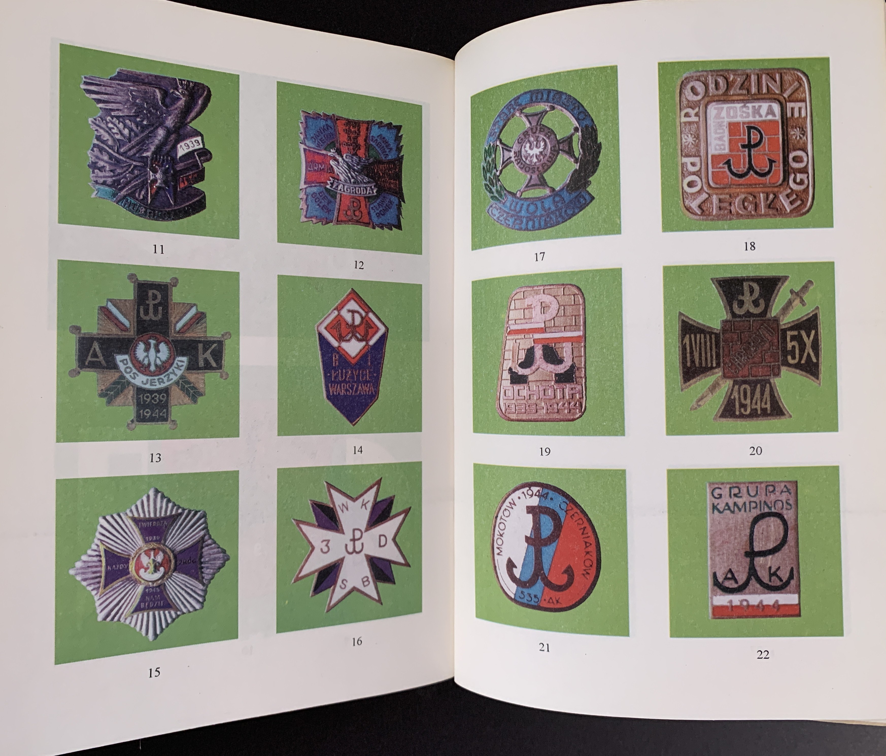 Publikacja bogata w ilustracje czarno-białe odznaczeń, oznak, odznak, orłów, medali i dokumentów.