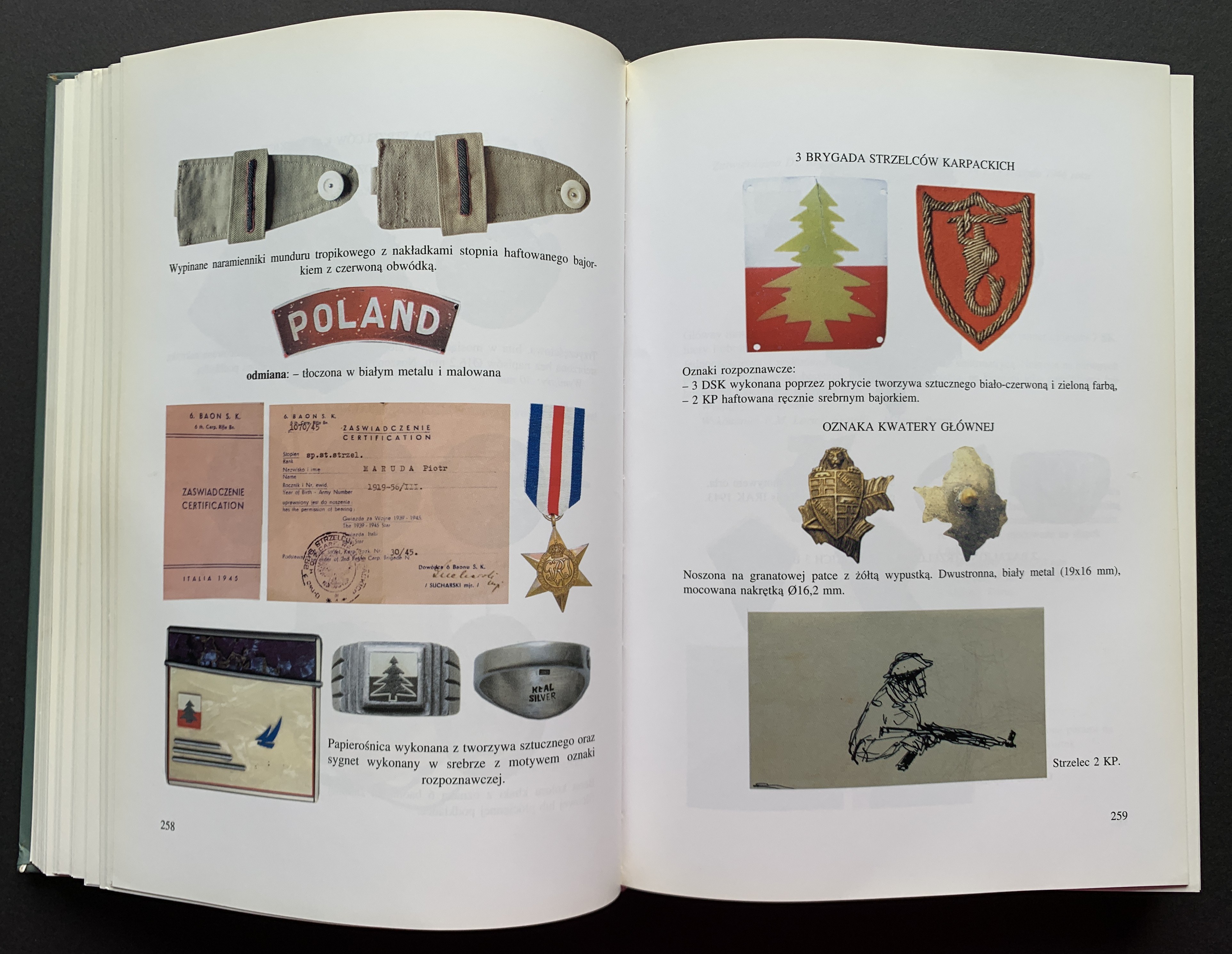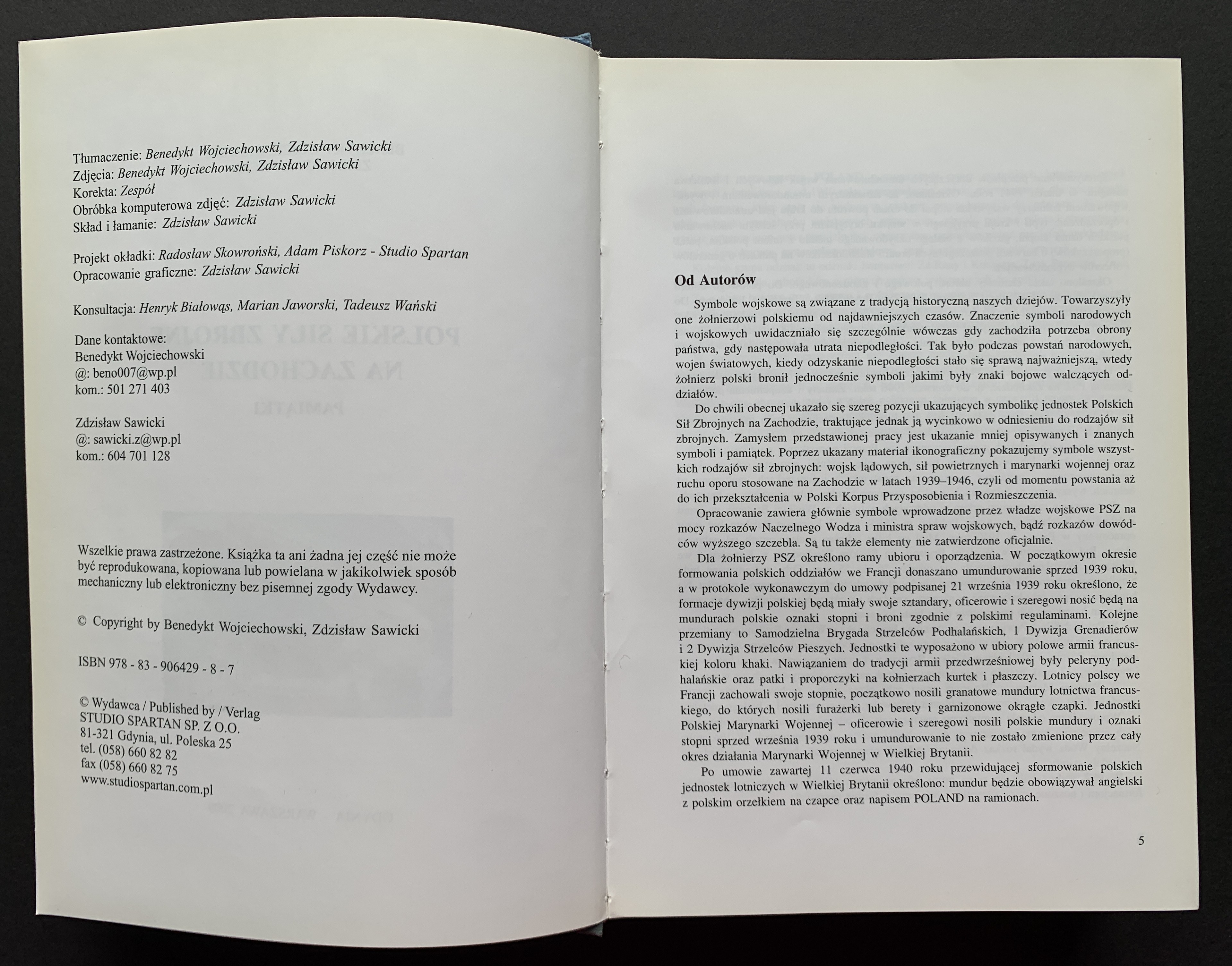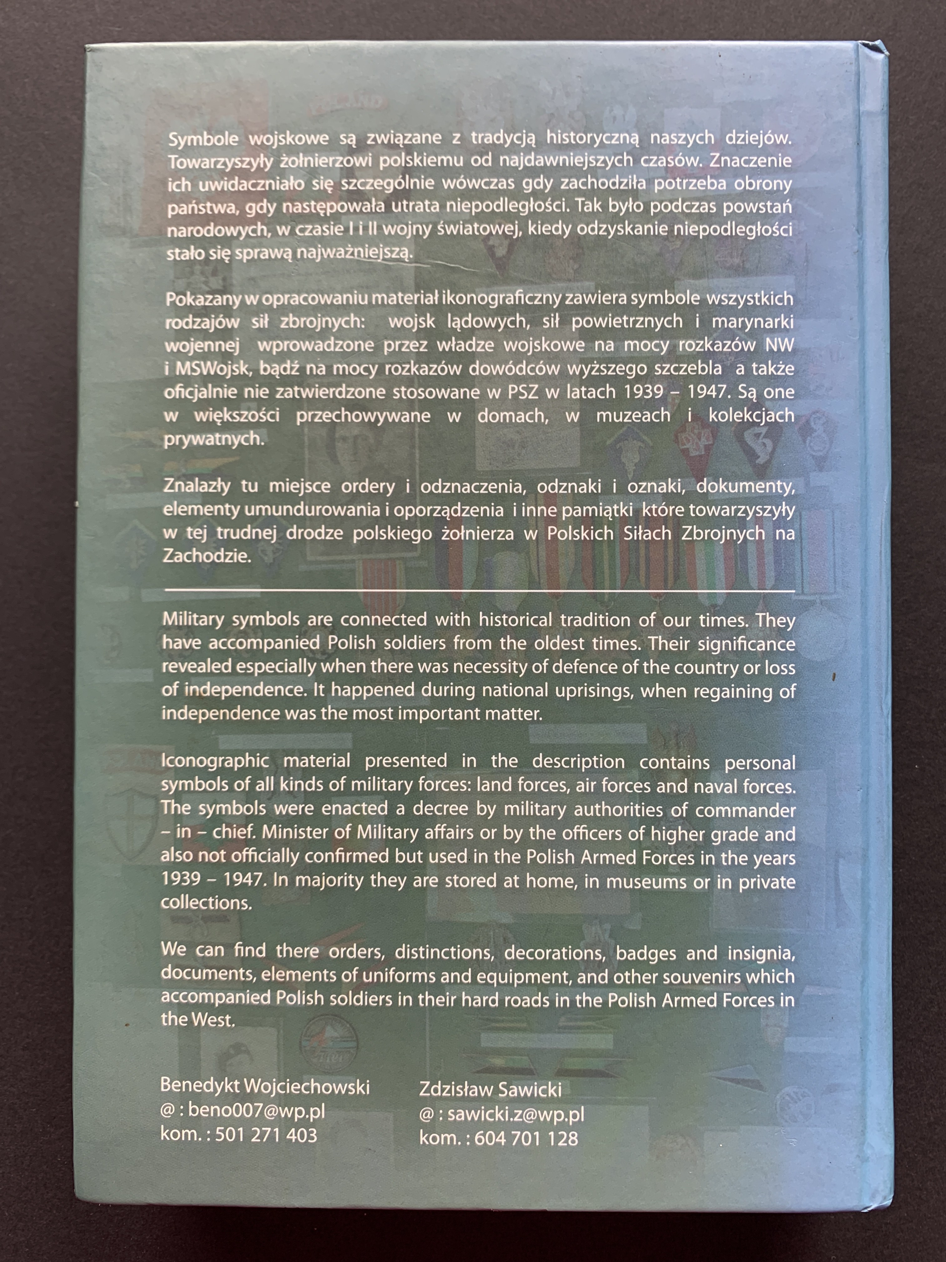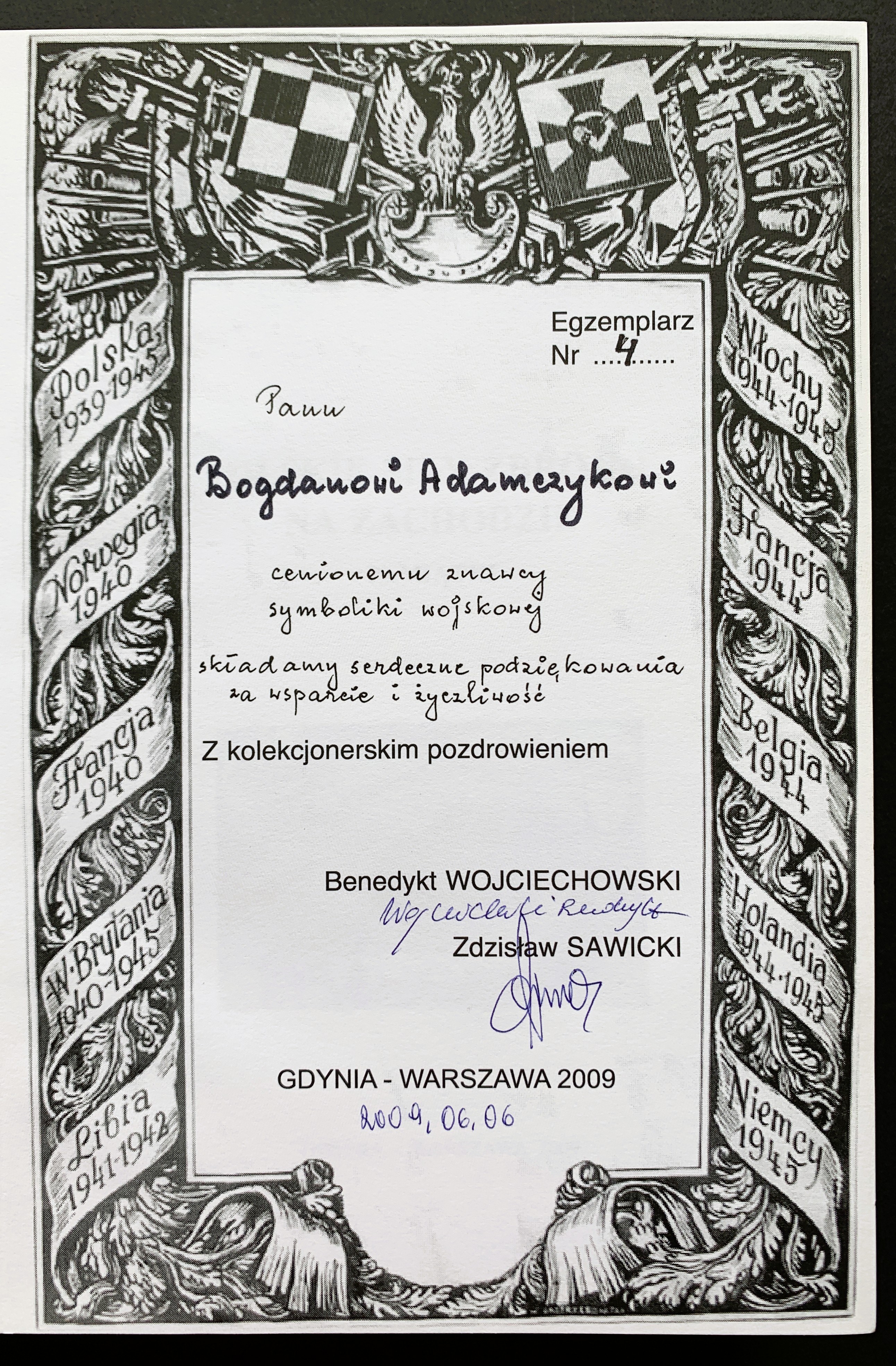 Wklejona przed stronę tytułową całostronicowa dedykacja autorów dla Bogdana Adamczyka - "cenionemu znawcy symboliki wojskowy składamy serdeczne podziękowania za wsparcie i życzliwość"