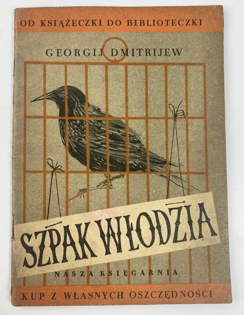 Dmitriêv Georgij, Szpak Włodzia, Od Książeczki do Biblioteczki, "Nasza Księgarnia", Warszawa 1952, s. 28, [2], wymiary 12 x 17 cm. Przeł. Włodzimierz Kałuba; il. Maria Kossakowska. Okładka broszurowa, wydawnicza. Otarcia, zabrudzenia okładki.