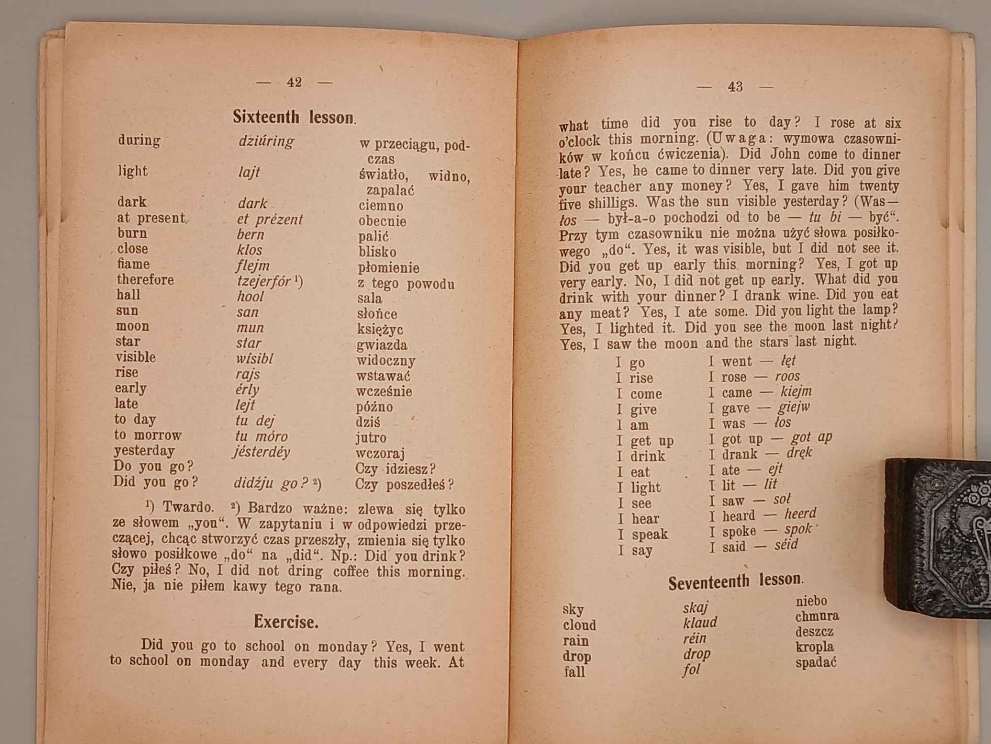 Podręczni do nauki języka angielskiego. Ciekawy zabieg marketingowy, okładka z zupełnie innym tytułem niż na stronie tytułowej, zapewne bardziej chwytliwym i skierowanym do emigrantów z kolejnej fali udającej się za ocean.