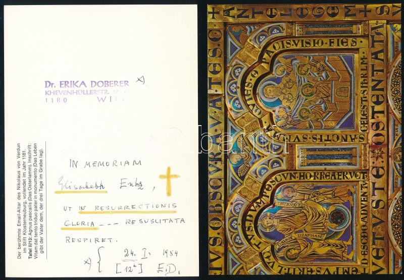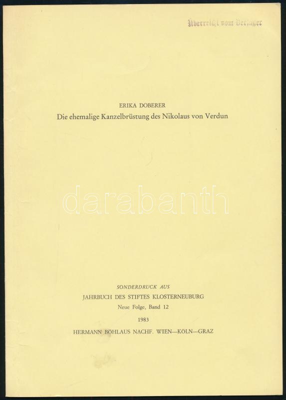 Doberer, Erika: Die ehemalige Kanzelbrüstung des Nikolaus von Verdun. Sonderdruck aus Jahrbuch des Stiftes Klosterneuburg. Neue Folge, Band 12. Wien-Köln-Graz, 1983, Hermann Böhlaus Nachf. DEDIKÁLT! Kiadói papírkötés, jó állapotban + 2 db képeslap
