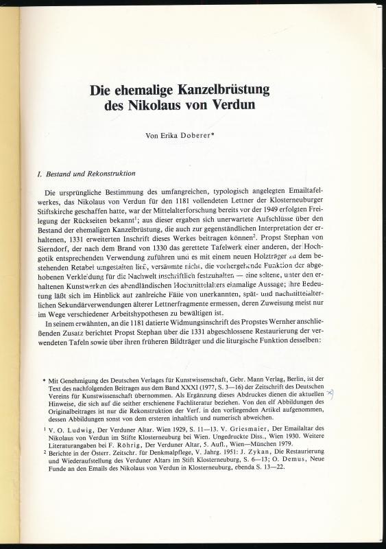 Doberer, Erika: Die ehemalige Kanzelbrüstung des Nikolaus von Verdun...