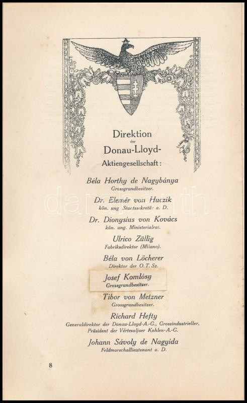 Donau Lloyd Aktiengesellschaft und ihre Unternehmungen. 1920-1922. Bp.-Wien, 1922., Centralbureau Budapest, (L. & F...