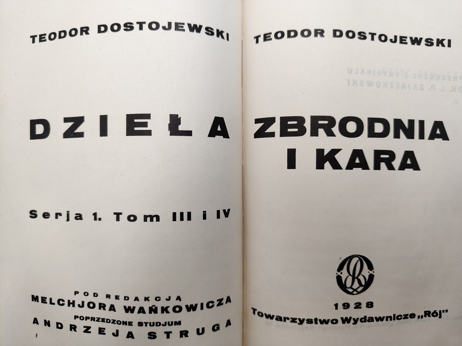 Dostojewski Fiodor - Zbrodnia i Kara - Tow. Wydawnicze Rój, Warszawa 1928