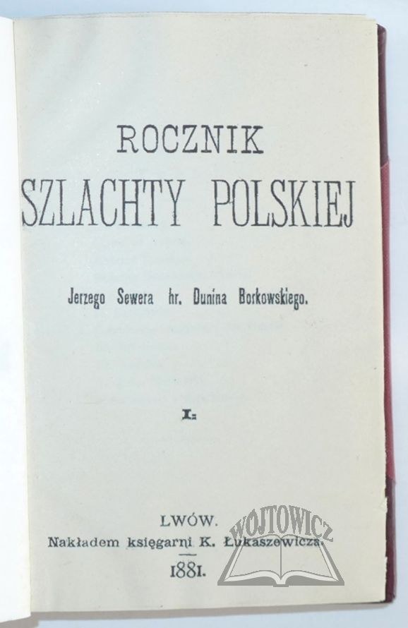 Rocznik szlachty polskiej. I. (R). I. Lwów 1881. Nakł. księg. K. Łukaszewicza. 16 s. XII, 621, opr. psk. współcz. złoc. napisy na grzbiecie, etuii karton.Exlibris i pieczęć W. O. Biernacki-Poray. Pier...