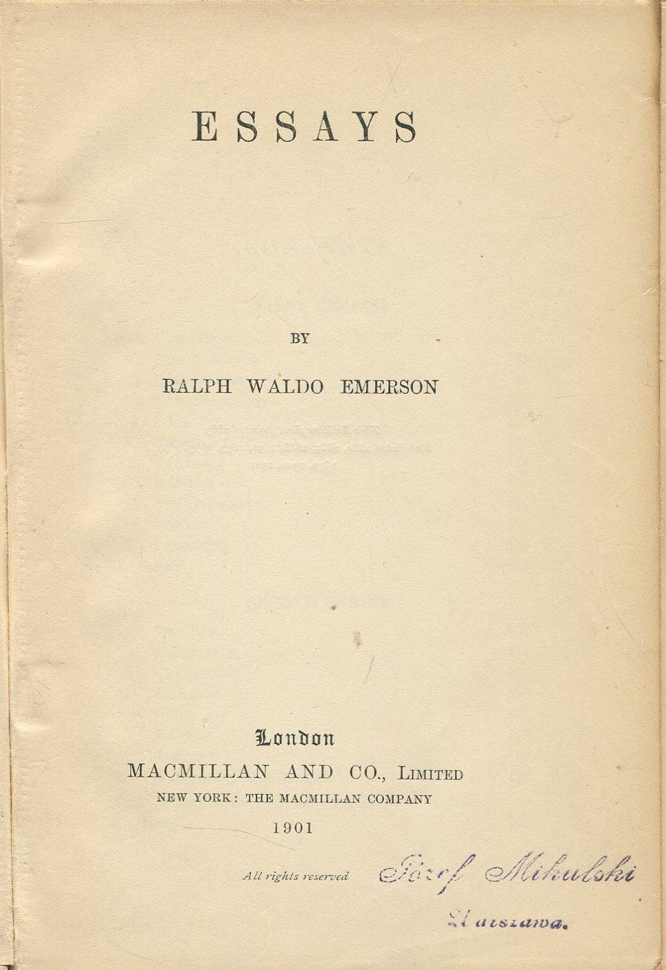 wieku, przez Adama Mickiewicza nazywanego Sokratesem amerykańskim. Wstęp napisał John Morley. Książki w j. angielskim.