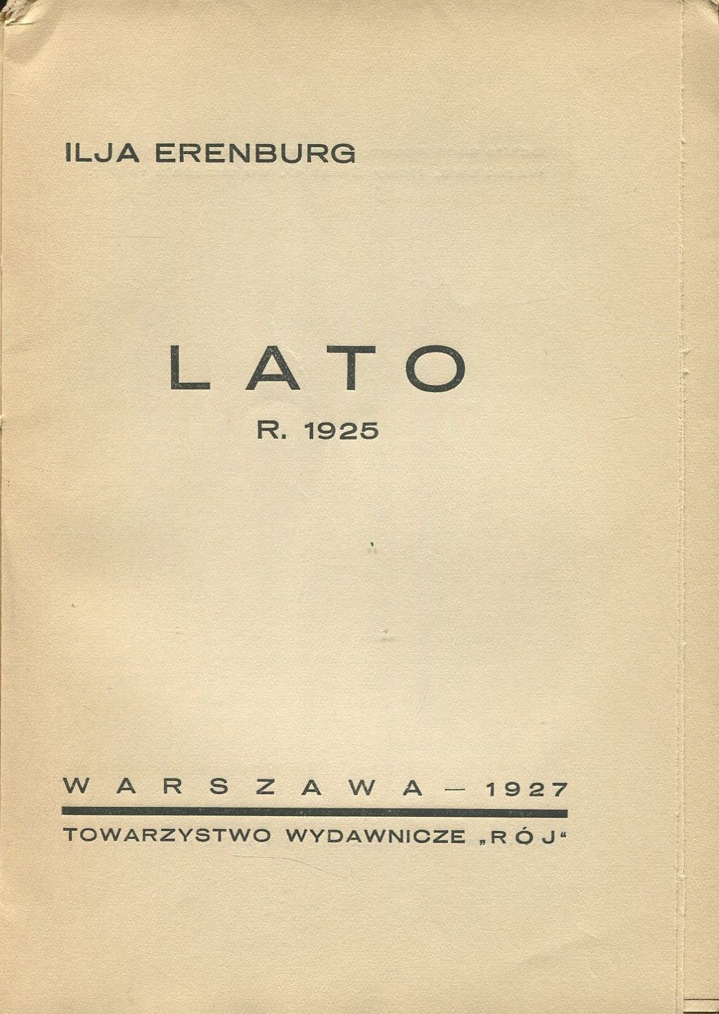 Warszawa 1927. Towarzystwo Wydawnicze "Rój". Seria: Ilja Erenburg, Wydanie zbiorowe, tom VI. 13x19 cm, str. 191, okładka miękka. Stan dobry (nierozcięte strony, niewielkie przybrudzenia, przebarwienie i otarcia okładki, drobne ubytki papieru na grzbiecie).