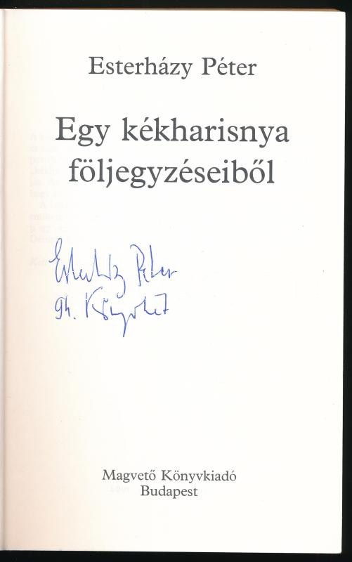 Esterházy Péter: Egy kék harisnya följegyzéseiből. A szerző, Esterházy Péter (1950-2016) író által ALÁÍRT példány...