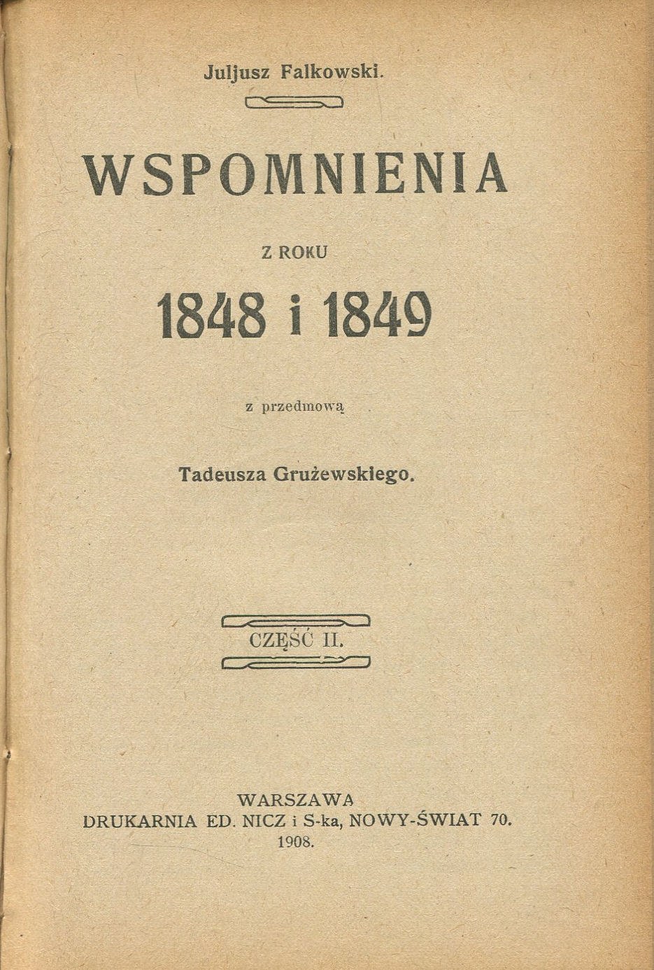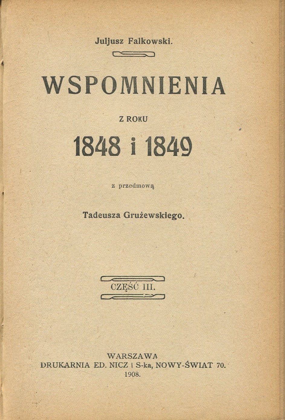Warszawa 1908. Drukarnia Ed. Nicz i S-ka. 12,5x18,5 cm, str. 151, 146, 143 [3 części w 1 woluminie], półskórkowa oprawa introligatorska z epoki. Stan bardzo dobry (delikatne otarcia oprawy, pojedyncze nieznaczne przybrudzenia).