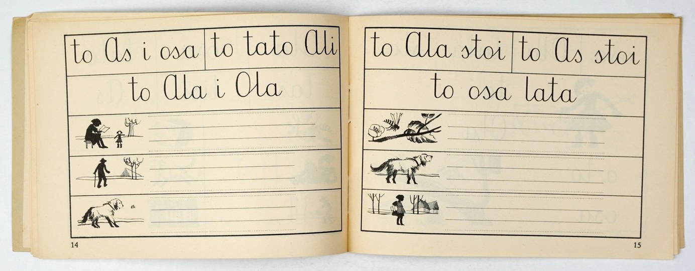 Okładki lekko zabrudzone, w lewym, górnym narożniku przedniej okł. odręcznie wpisany numer, poza tym stan bardzo dobry. Zeszyt ćwiczeń do "Elementarza dla szkół wiejskich" tegoż autora. Obrazki Jana Miklaszewskiego.
